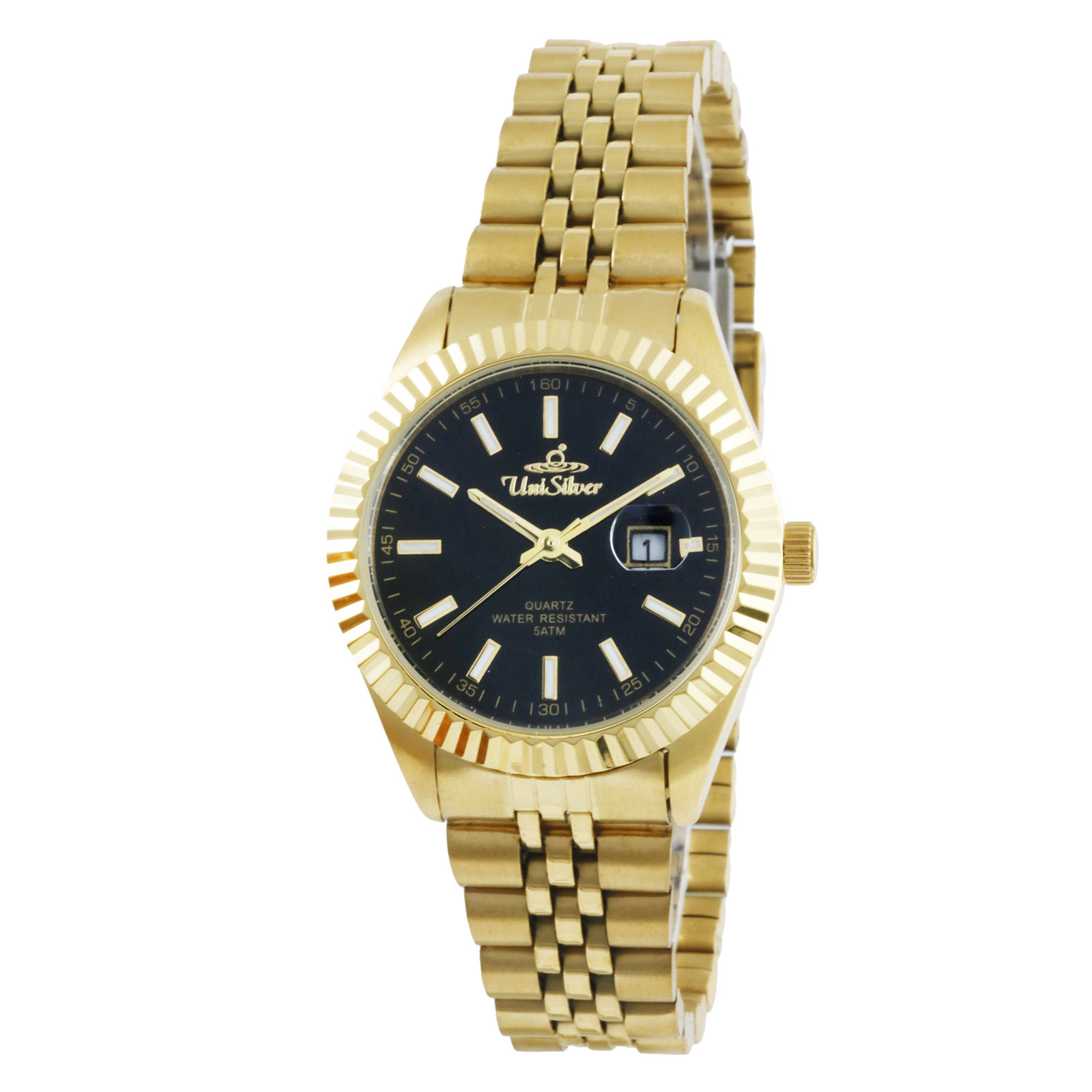 Women's Small Analog Date Window Black/Gold Stainless Steel KW3218-1205 Watch