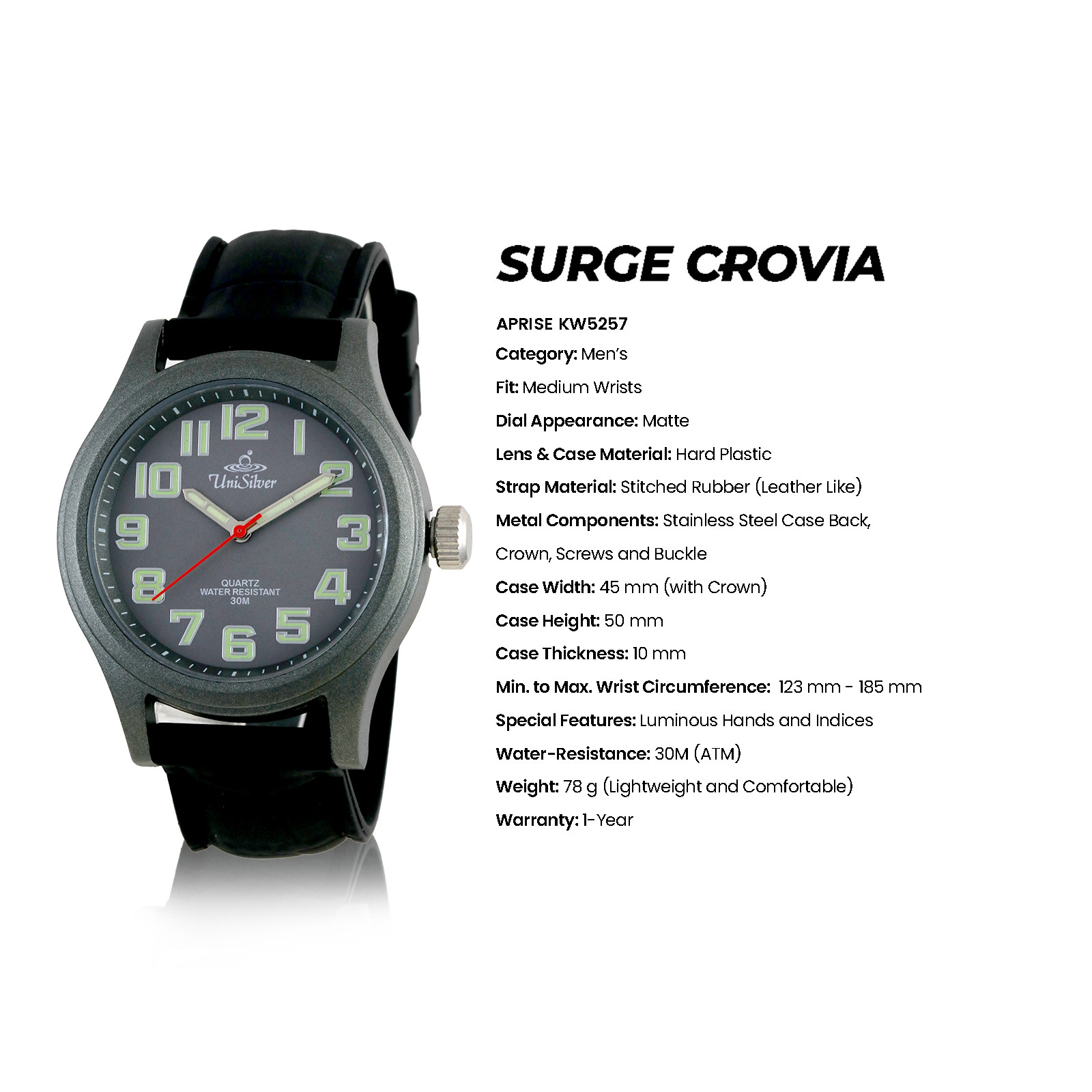 Men's Medium Analog Light Green /Black Stitched Rubber KW5257-1001 Watch