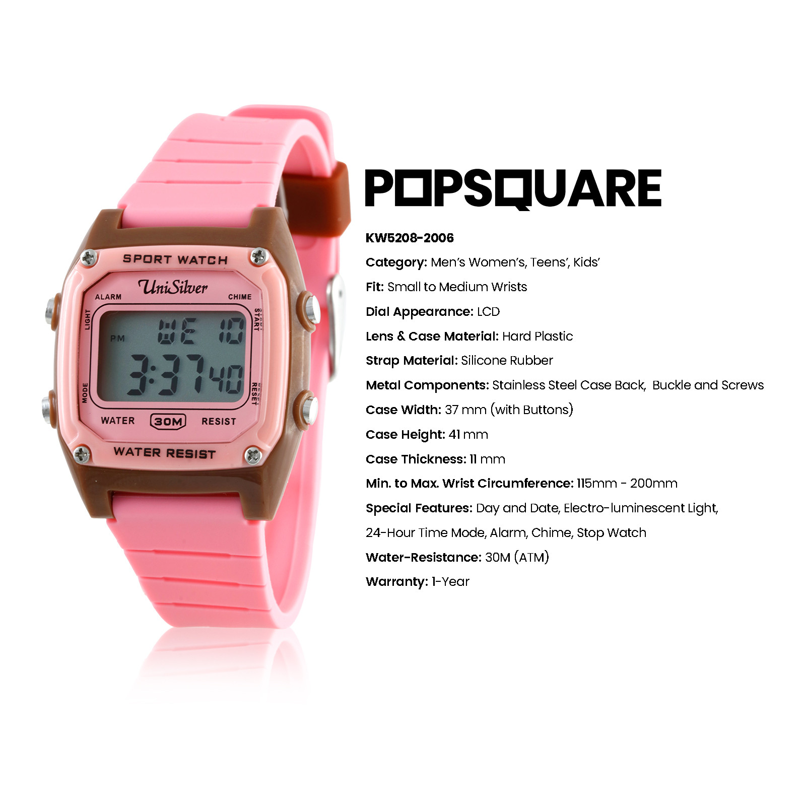 The PopSquare digital watch by UniSilver TIME is a modern, playful watch with a bold square design, made for everyday casual wear. Its sleek and vibrant look makes it easy to style with any outfit, whether you’re heading out for fun with friends, enjoying weekend adventures, or just adding a pop of personality to your day. Durable and comfortable, it’s designed to be a reliable companion for all your daily moments.