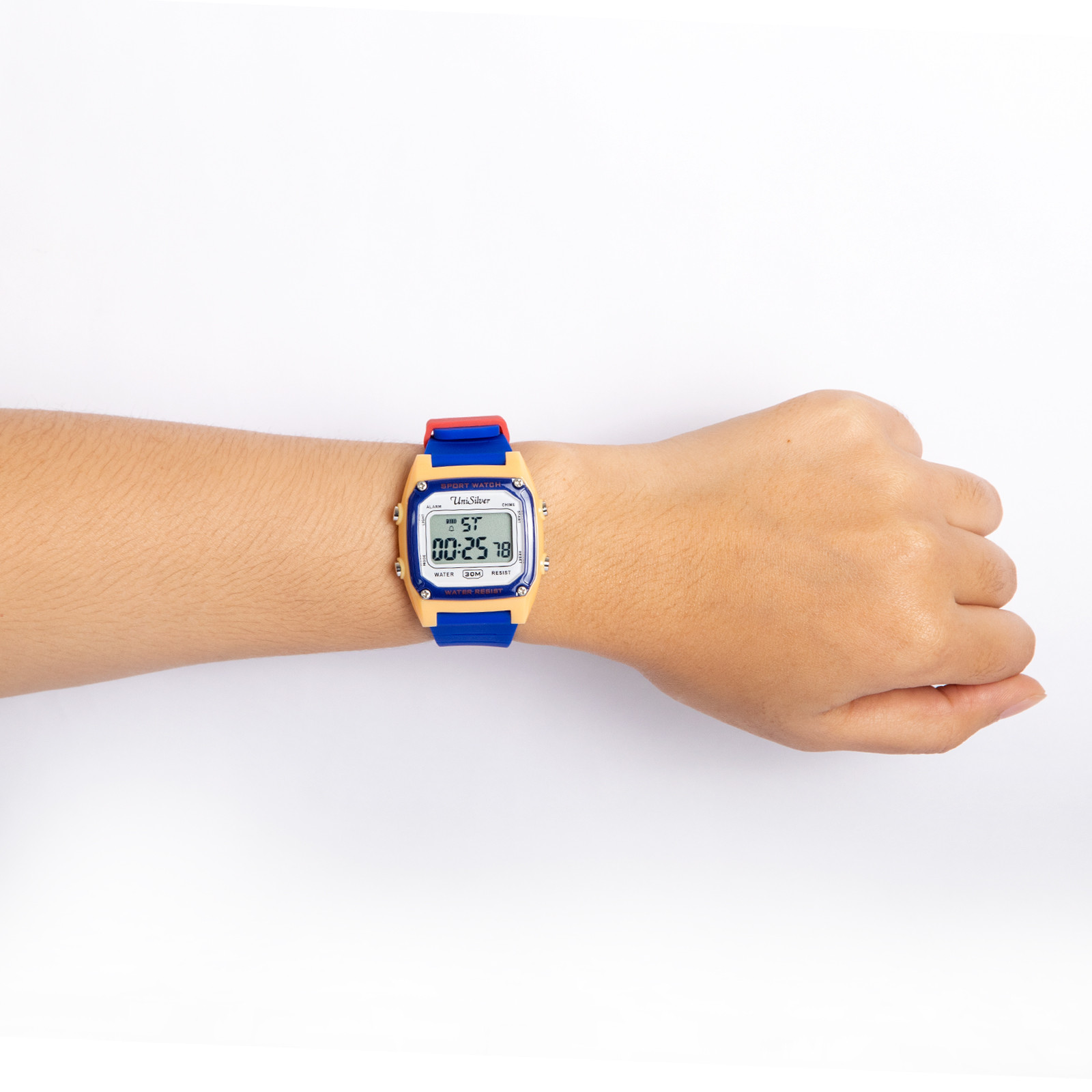 The PopSquare digital watch by UniSilver TIME is a modern, playful watch with a bold square design, made for everyday casual wear. Its sleek and vibrant look makes it easy to style with any outfit, whether you’re heading out for fun with friends, enjoying weekend adventures, or just adding a pop of personality to your day. Durable and comfortable, it’s designed to be a reliable companion for all your daily moments.