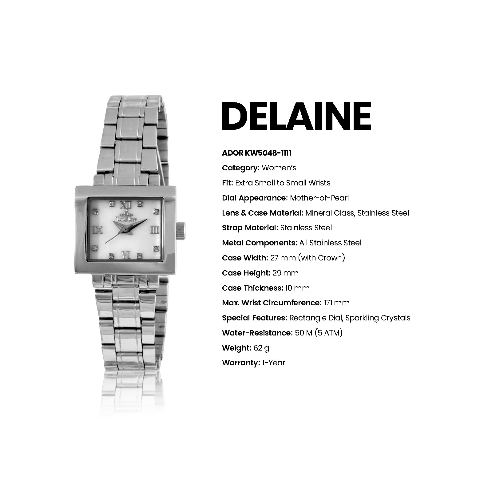 DELAINE ADOR Women's Analog Rectangle Mother-of-Pearl/Silver Stainless Steel KW5048-1111 Watch
