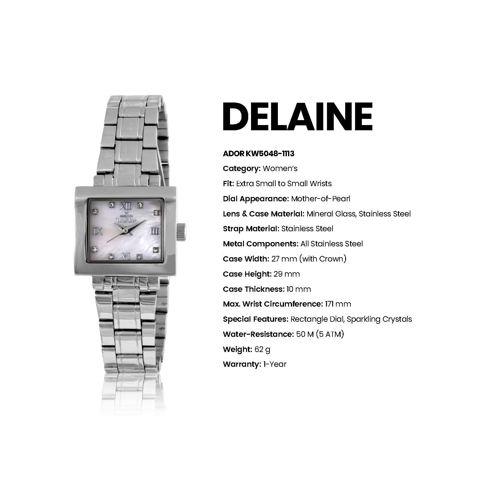 DELAINE ADOR Women's Analog Rectangle Mother-of-Pearl/Silver Stainless Steel KW5048-1113 Watch