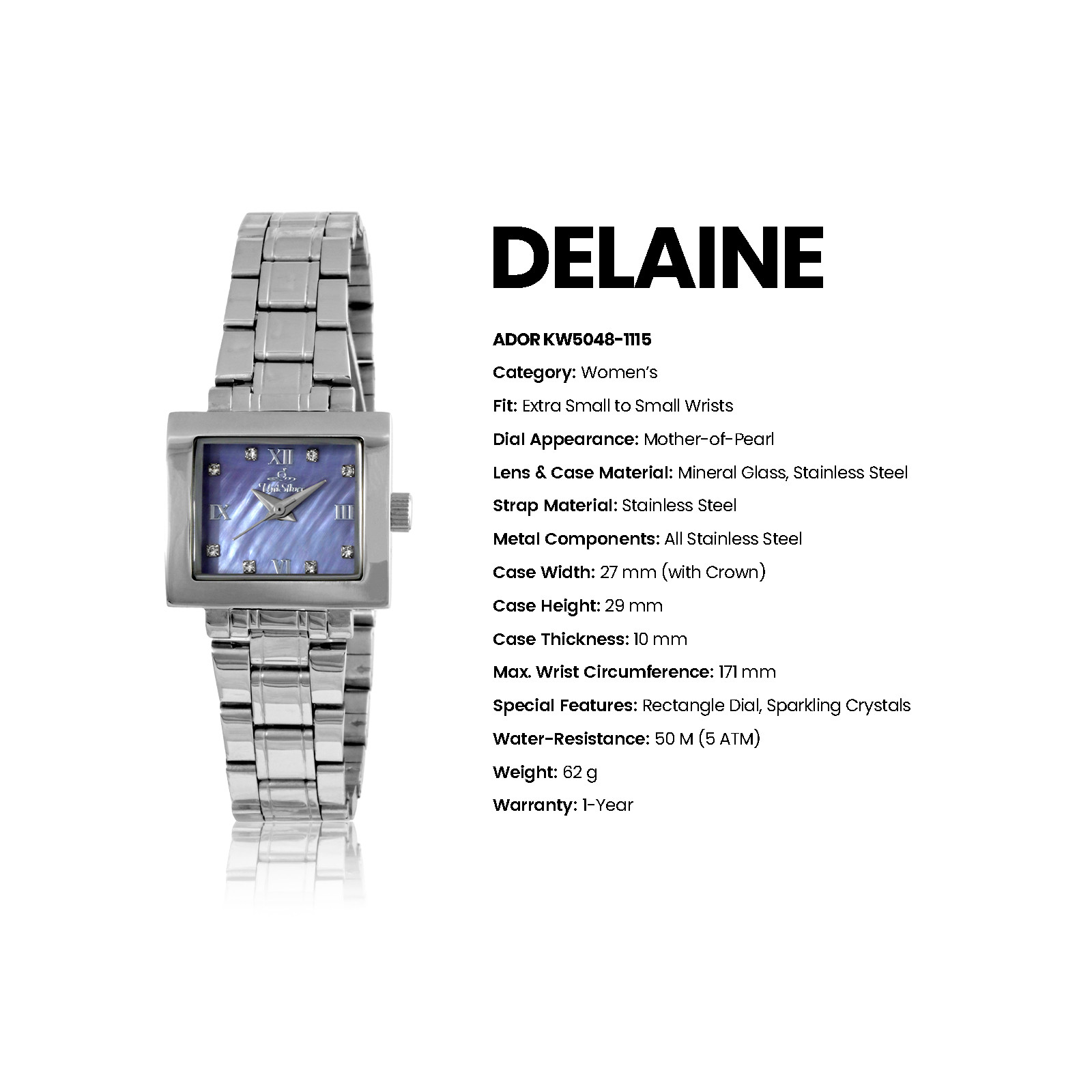 DELAINE ADOR Women's Analog Rectangle Mother-of-Pearl/Silver Stainless Steel KW5048-1115 Watch