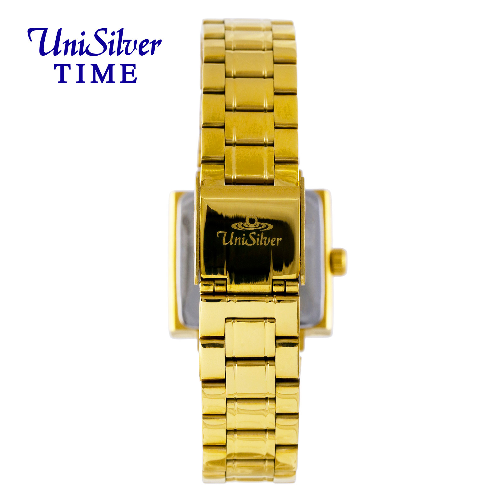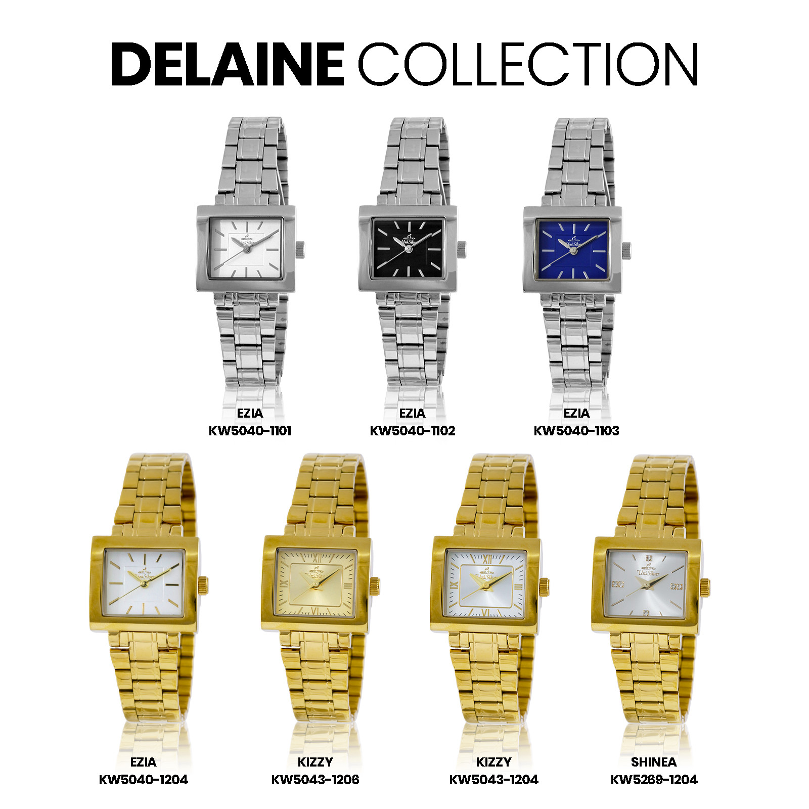 Radiate sophistication with the Delaine Kizzy timepiece from UniSilver TIME. This accessory gleams with its sleek bracelet. The rectangular-shaped dial is the perfect statement for this elegant watch. Watch Care (Stainless Steel Case & Bracelet · Sapphire Crystal) a.) Made for everyday moments. Wipe with a soft, dry cloth to keep it looking its best. b.) Avoid contact with chemicals, perfumes, and extreme heat. c.) Sapphire crystal resists scratches, but avoids hard impacts. d.) Follow the indicated water-resistance rating and keep the crown secured. e.) Store in a dry place when not in use. Periodic servicing helps maintain optimal performance. Over time, fine marks on stainless steel reflect a watch well worn — and well lived.