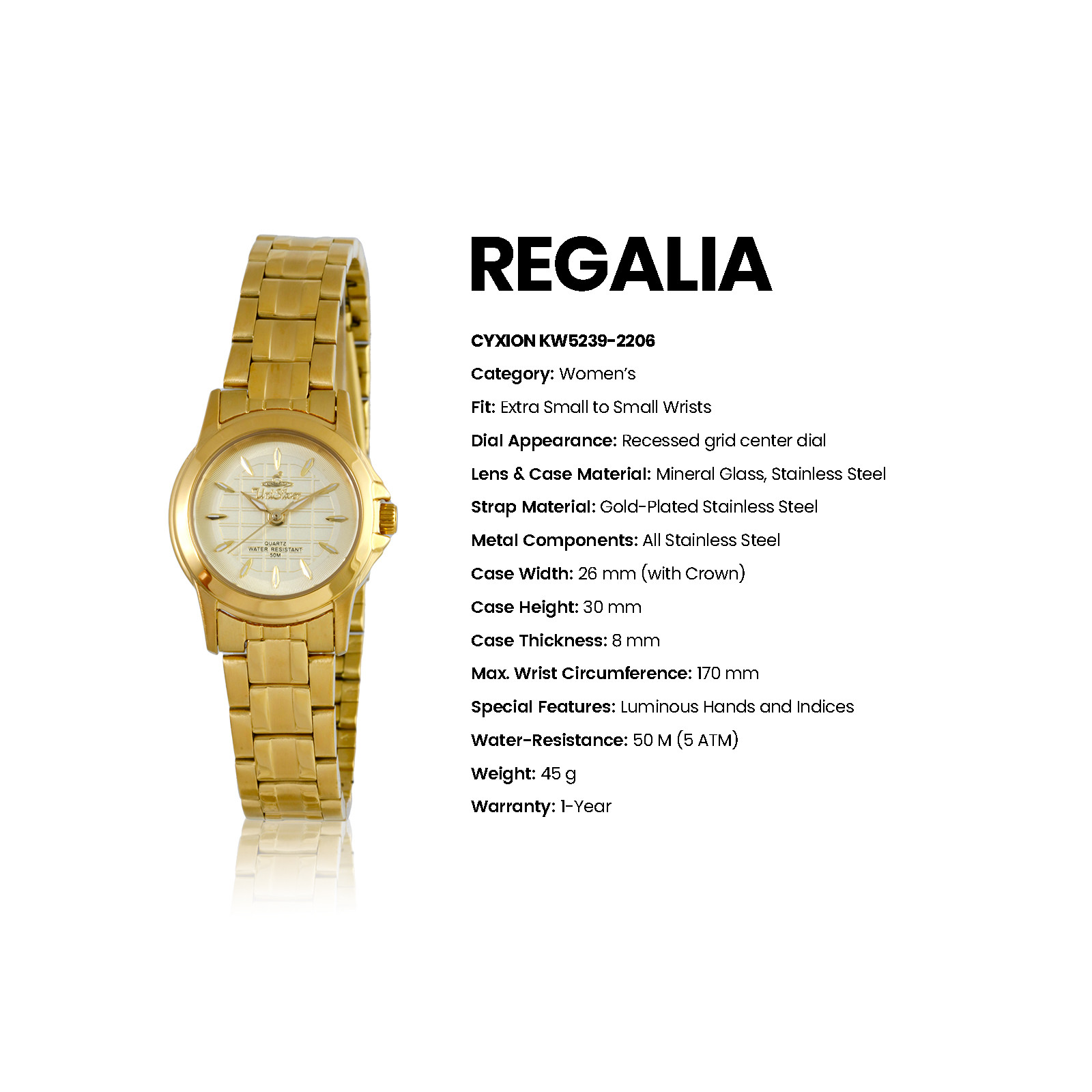 REGALIA CYXION Women's Analog N/Gold Stainless Steel KW5239-2206 Watch