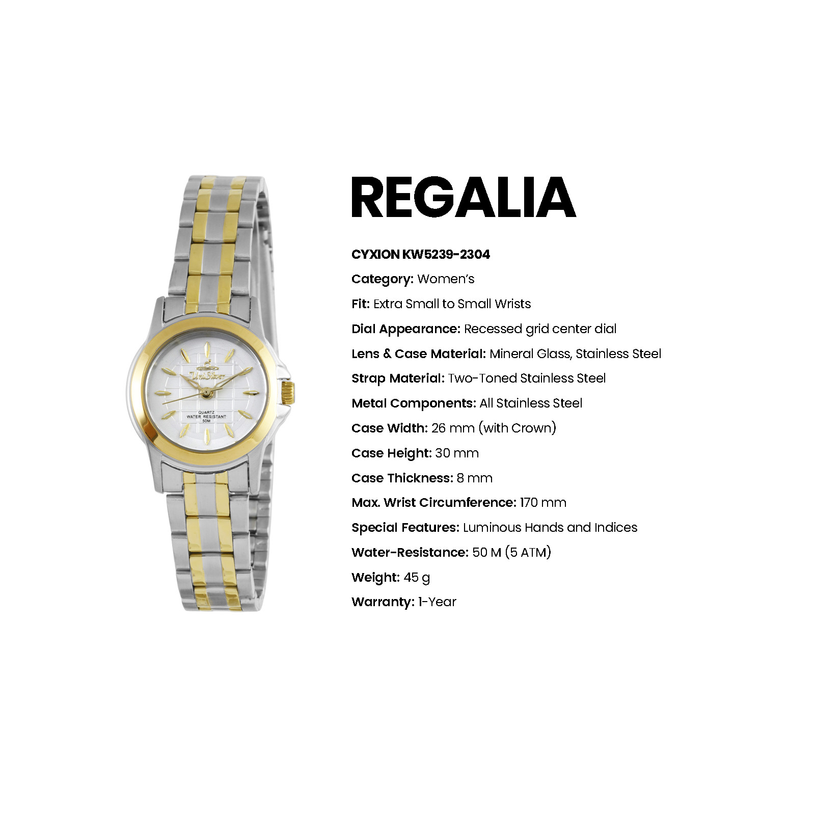 REGALIA CYXION Women's Analog White/Two-Toned Stainless Steel KW5239-2304 Watch