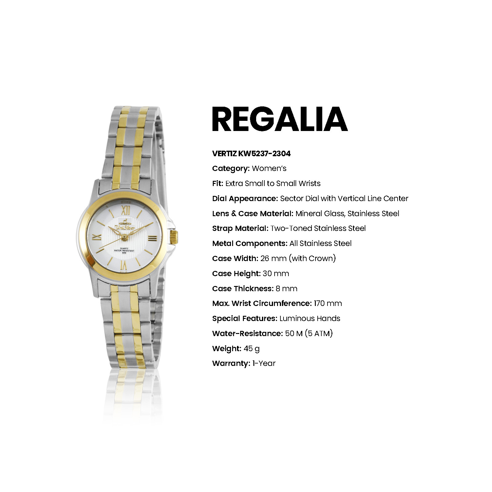 REGALIA VERTIZ Women's Analog White/Two-Toned Stainless Steel KW5237-2304 Watch