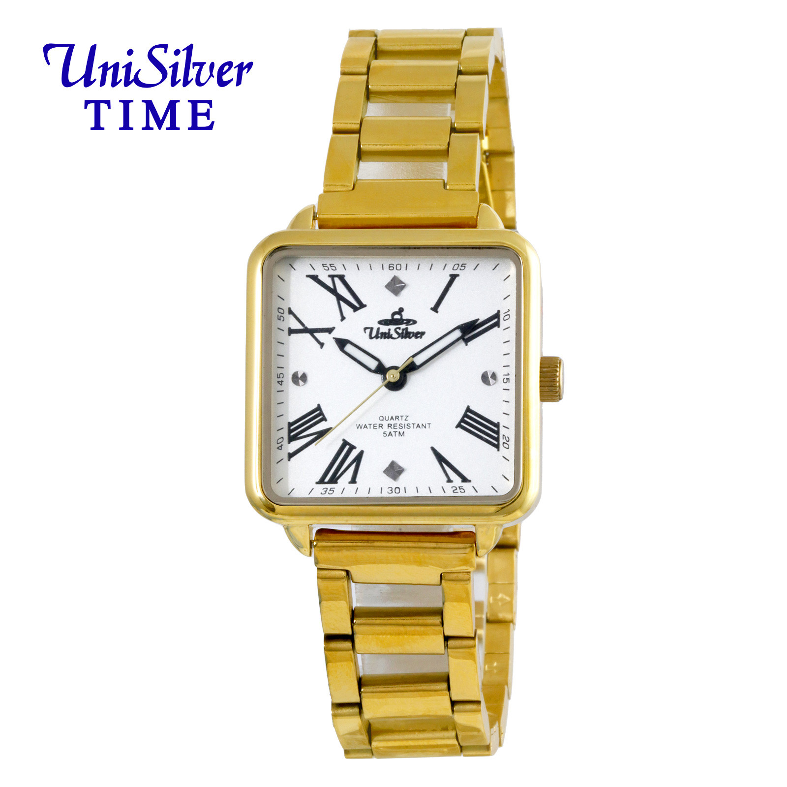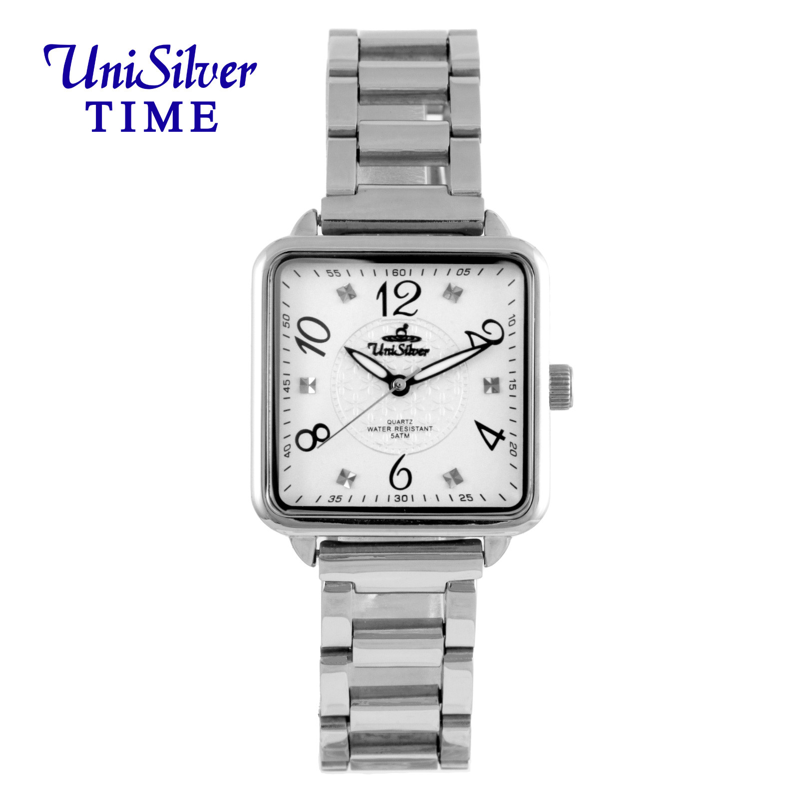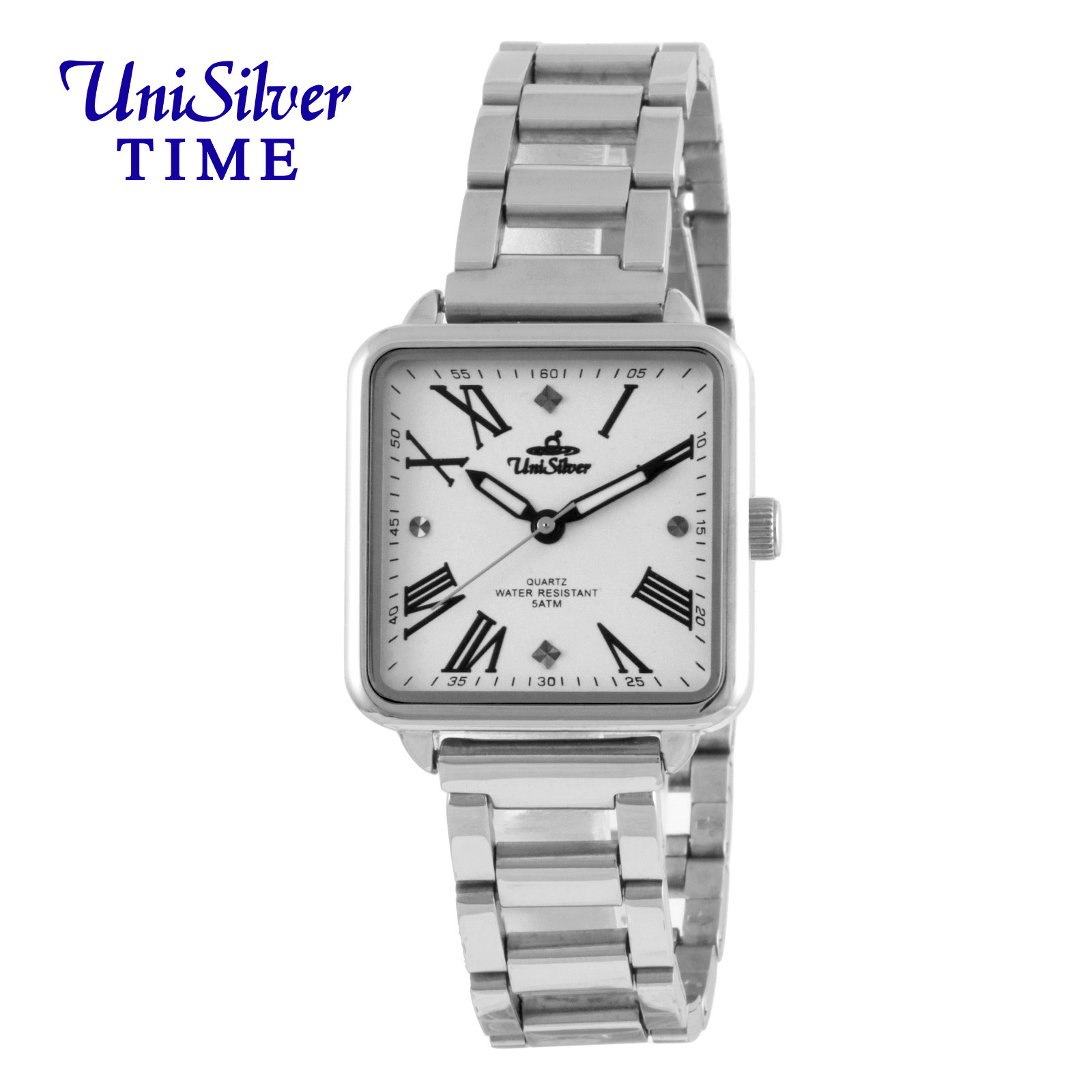 VERIQ FLOREN Women's Extra Small Analog Square Dial, Chain Type Links Bracelet Silver-White/Silver Stainless Steel (Chain Link) KW5306-1101 Watch