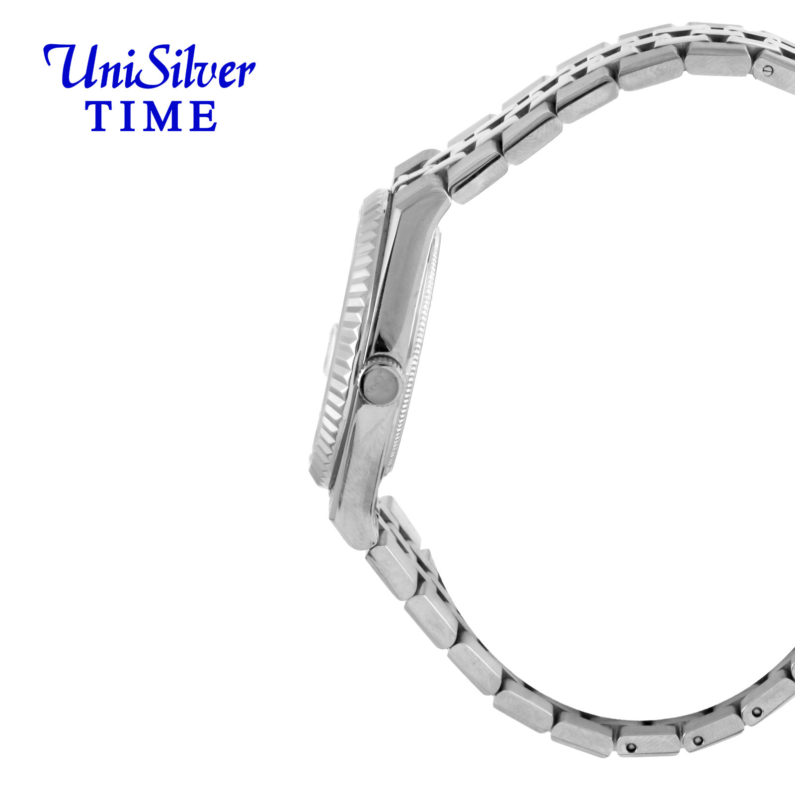 Powered by a self-winding 21-jewel movement and showcased through a transparent case back, it delivers reliable, battery-free performance. Built with durable stainless steel and scratch-resistant sapphire glass, it’s made for everyday wear.