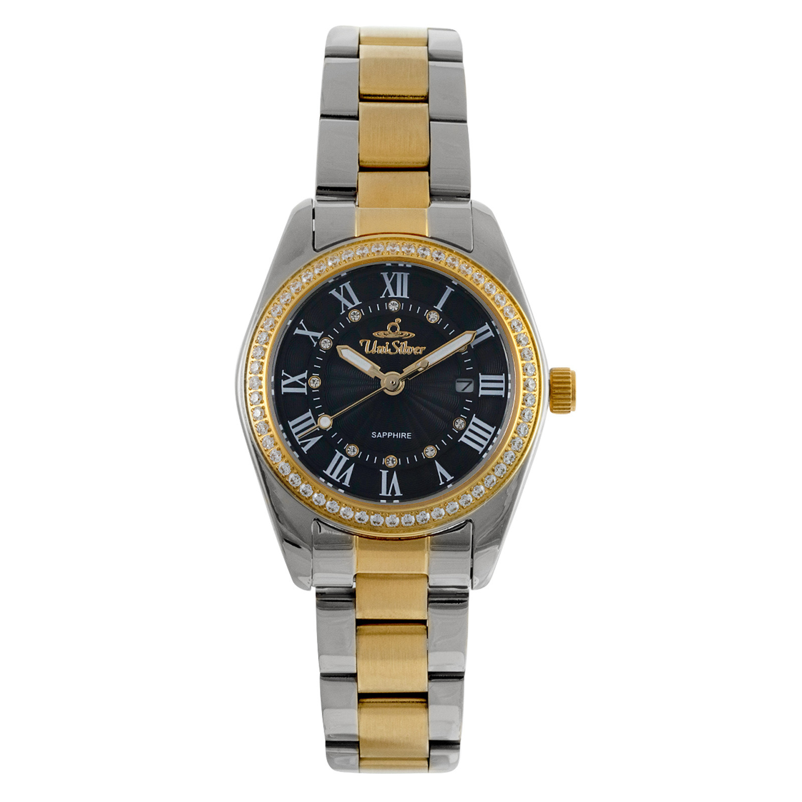 Women's Extra Small Analog Sapphire Sparkling Crystals Black/Two-Tone (Silver and Gold) Stainless Steel KW4637-2305 Watch