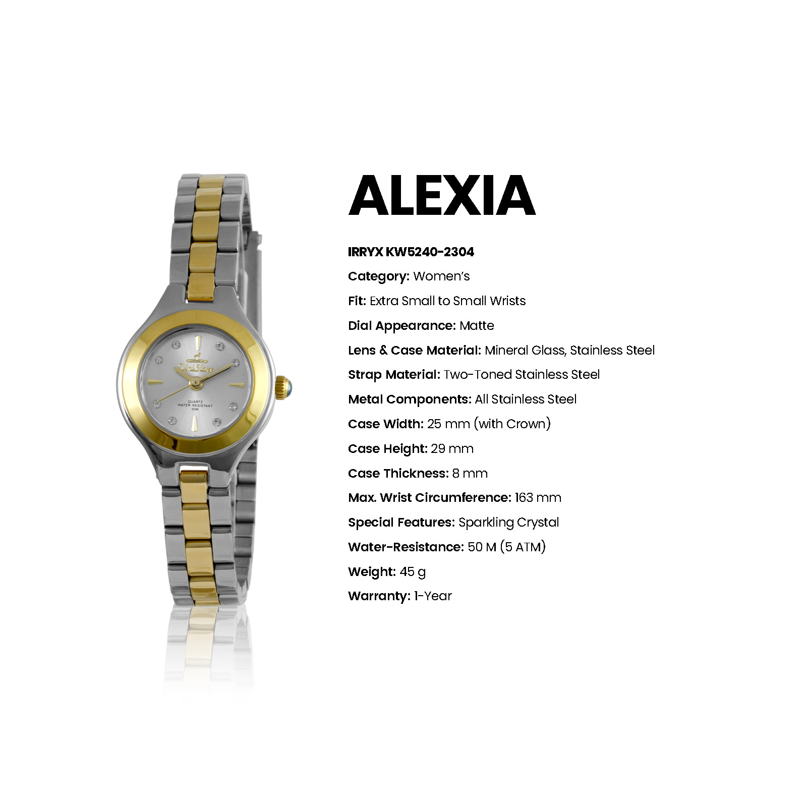 ALEXIA IRRYX Women's Extra Small Analog White/Two-Toned Stainless Steel KW5240-2304 Watch