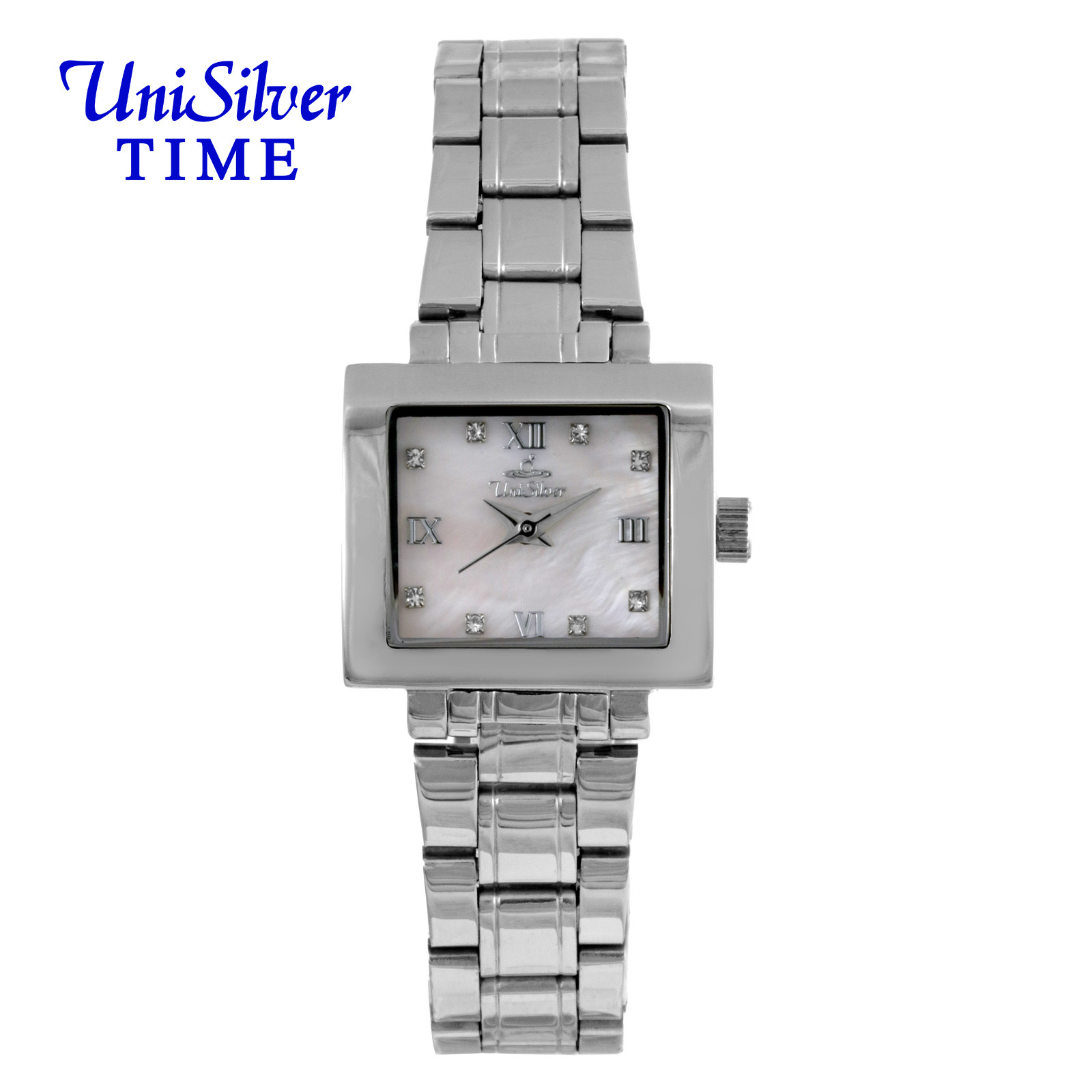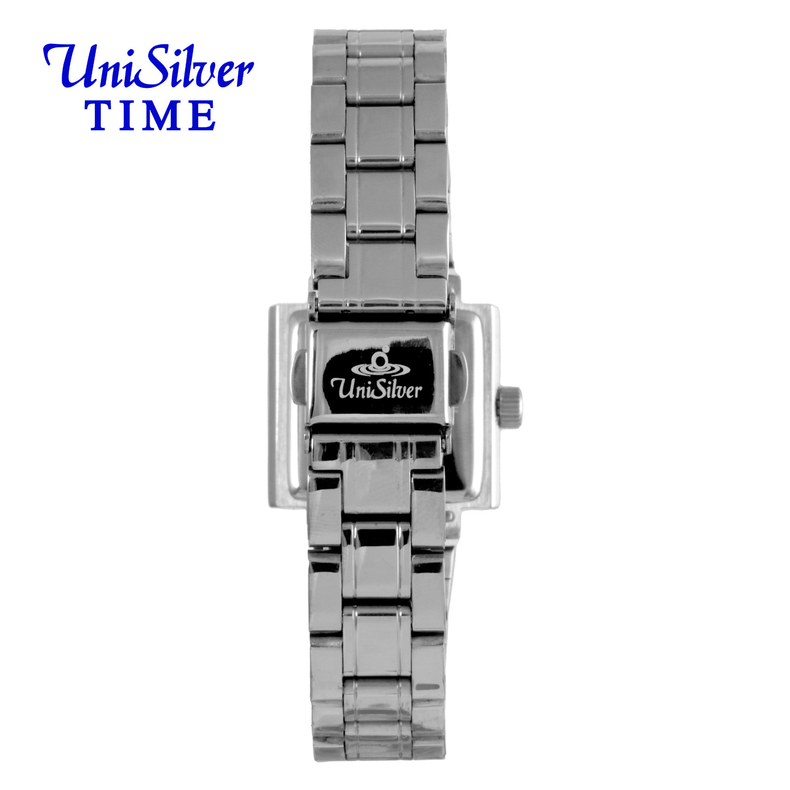 Radiate sophistication with the Delaine Ador timepiece from UniSilver TIME. This gold-plated accessory gleams with its sleek bracelet. The focal point - the off-white dial - sparkles marvelously with crystals for hour indices. The rectangular-shaped dial is the perfect statement for this timeless watch. Watch Care (Stainless Steel Case & Bracelet · Sapphire Crystal) a.) Made for everyday moments. Wipe with a soft, dry cloth to keep it looking its best. b.) Avoid contact with chemicals, perfumes, and extreme heat. c.) Sapphire crystal resists scratches, but avoids hard impacts. d.) Follow the indicated water-resistance rating and keep the crown secured. e.) Store in a dry place when not in use. Periodic servicing helps maintain optimal performance. Over time, fine marks on stainless steel reflect a watch well worn — and well lived.