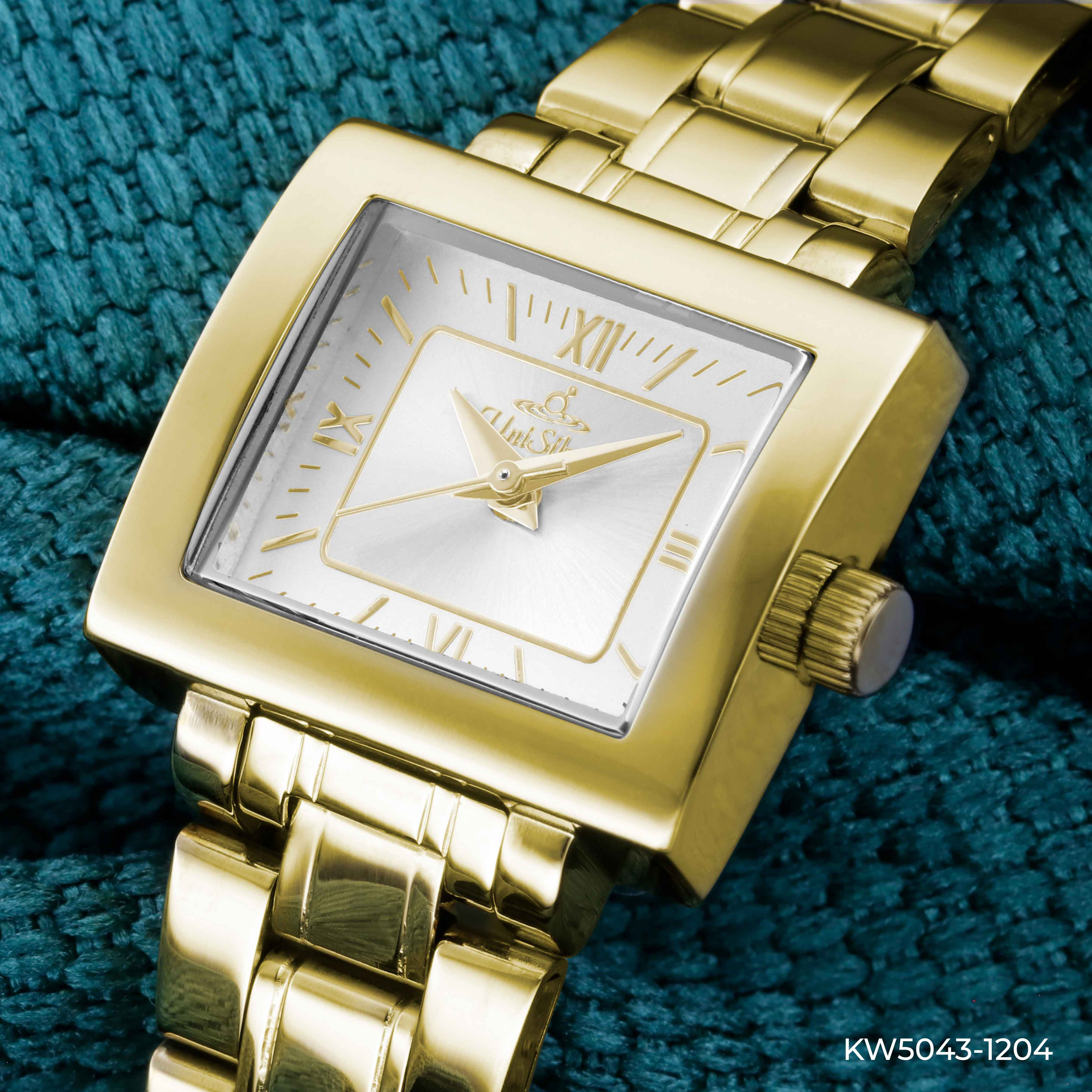 Radiate sophistication with the Delaine Ador timepiece from UniSilver TIME. This gold-plated accessory gleams with its sleek bracelet. The focal point - the off-white dial - sparkles marvelously with crystals for hour indices. The rectangular-shaped dial is the perfect statement for this timeless watch. Watch Care (Stainless Steel Case & Bracelet · Sapphire Crystal) a.) Made for everyday moments. Wipe with a soft, dry cloth to keep it looking its best. b.) Avoid contact with chemicals, perfumes, and extreme heat. c.) Sapphire crystal resists scratches, but avoids hard impacts. d.) Follow the indicated water-resistance rating and keep the crown secured. e.) Store in a dry place when not in use. Periodic servicing helps maintain optimal performance. Over time, fine marks on stainless steel reflect a watch well worn — and well lived.