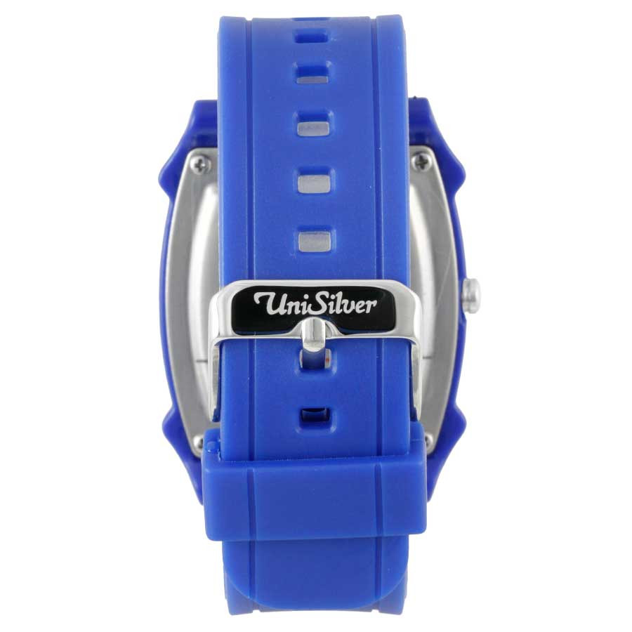 A fashion must-have, the trendy Kandy Krushhh Junior watch is a cool companion for your casual everyday, sports or clubbing attire! Its bezel is a unique rounded square shape. The attractive dial has stylized numbers and lines for hour indices. The thick hypoallergenic rubber strap goes well with the one-of-a-kind dial. Go ahead and make a statement with this fun and funky timepiece from UniSilver TIME!