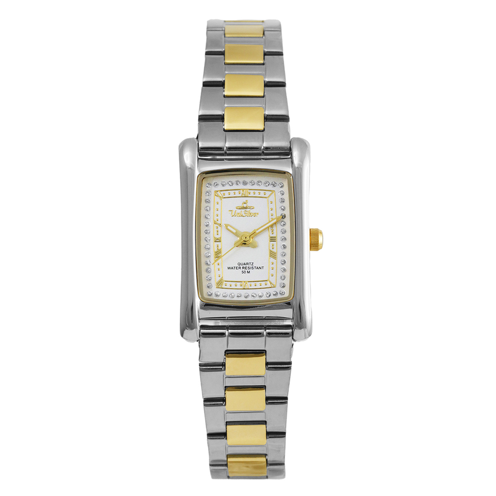 LIOREN AVELL Women's Small Analog Square / Rectangle / Sparkling Crystals White/Two-Tone (Silver and Gold) Stainless Steel KW5171-2304 Watch