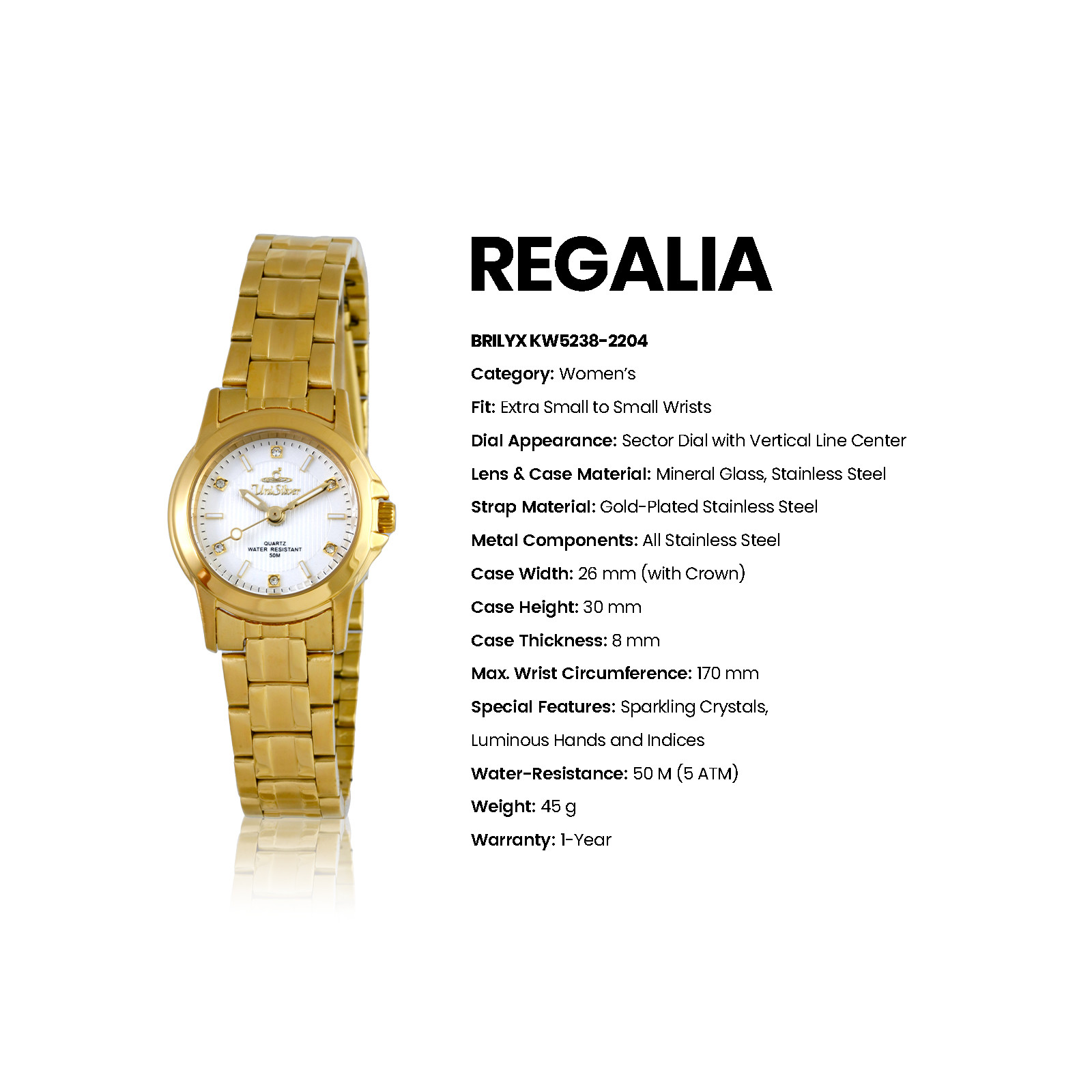 REGALIA BRILYX Women's Analog White/Gold Stainless Steel KW5238-2204 Watch