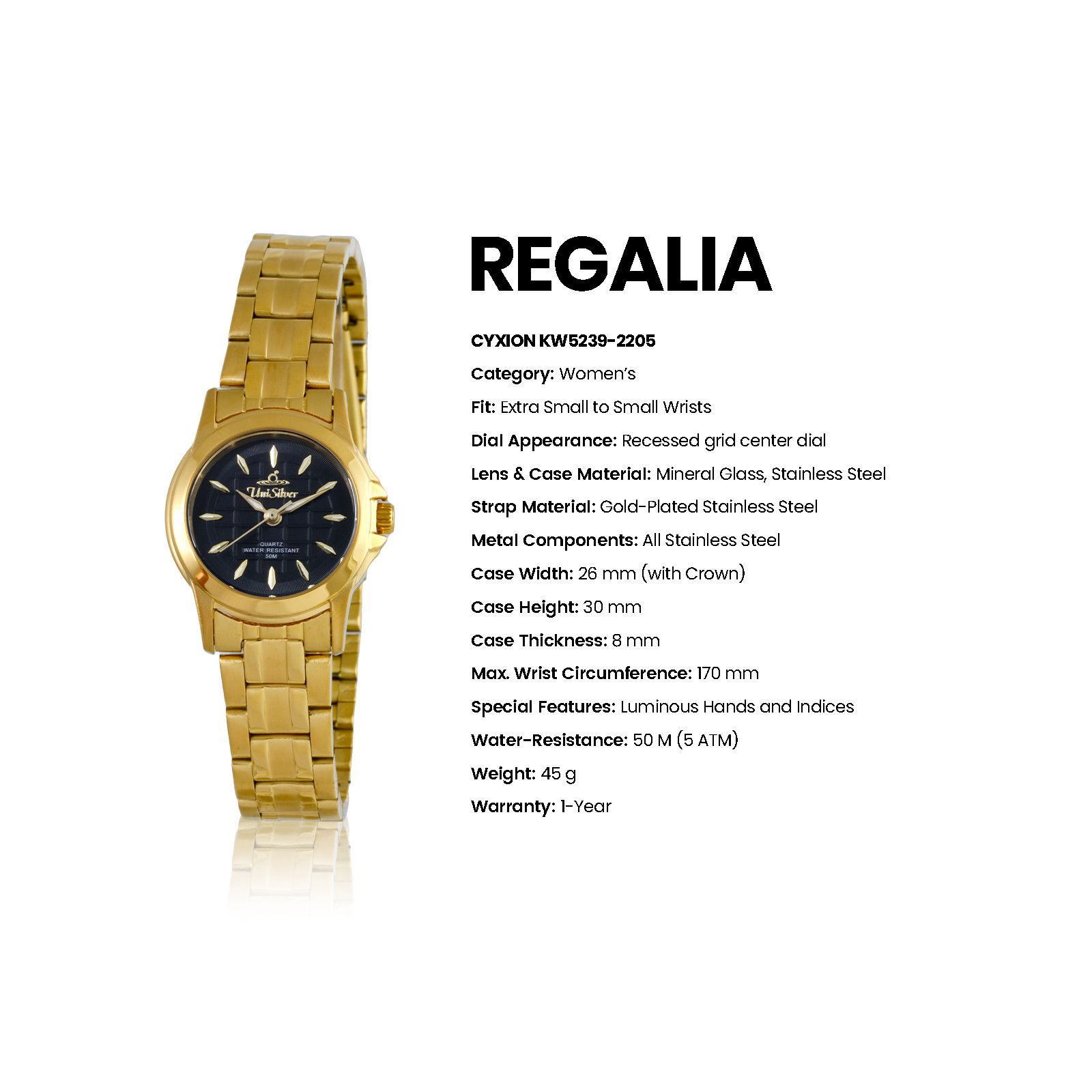 REGALIA CYXION Women's Analog Black/Gold Stainless Steel KW5239-2205 Watch