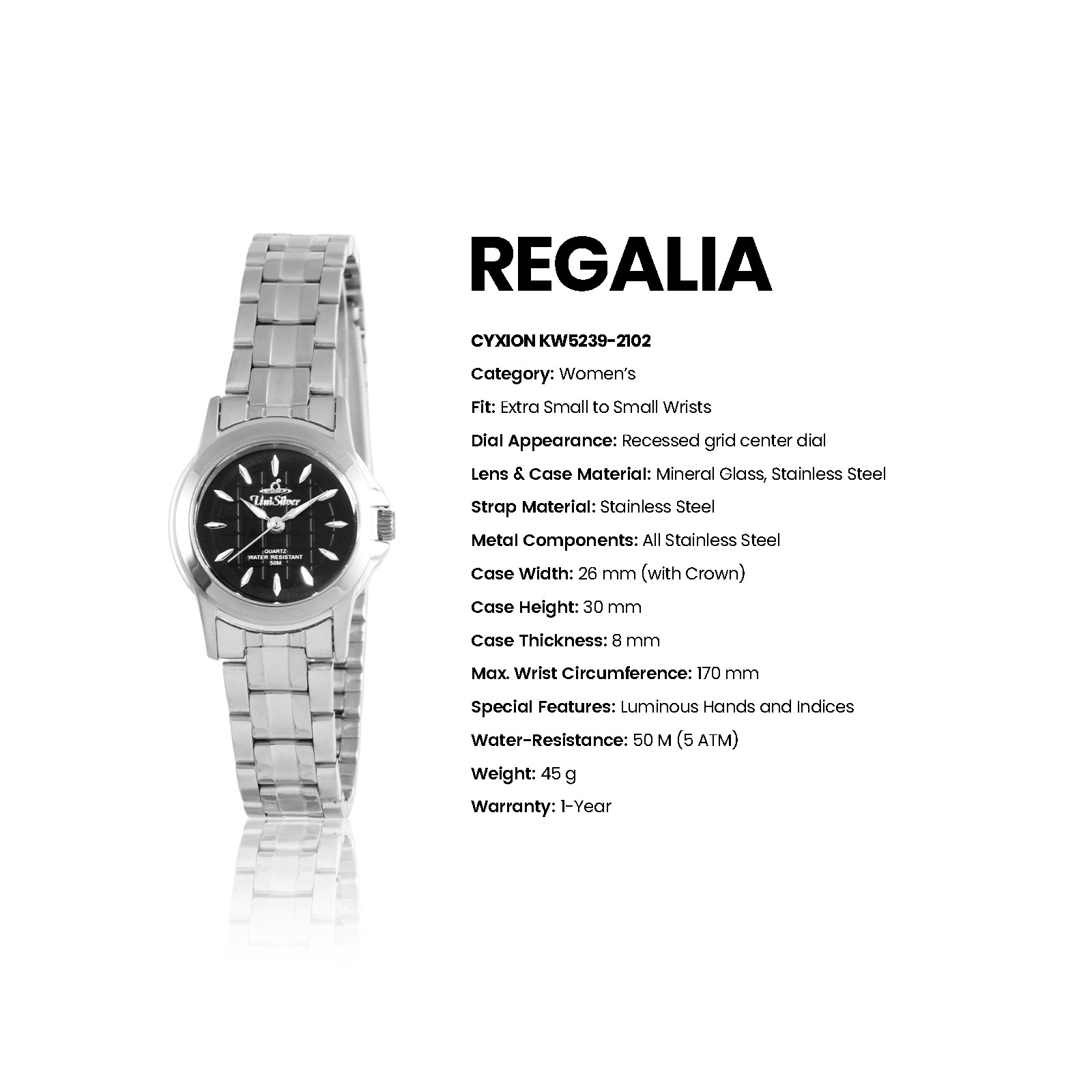 Introducing Regalia Cyxion where structure meets timeless sophistication. Defined by its multi-ring dial and refined textured center, Cyxion reflects balance and modern elegance. Powered by reliable Japan movement and crafted in stainless steel with 50M water resistance, it’s designed to transition effortlessly from day to night.