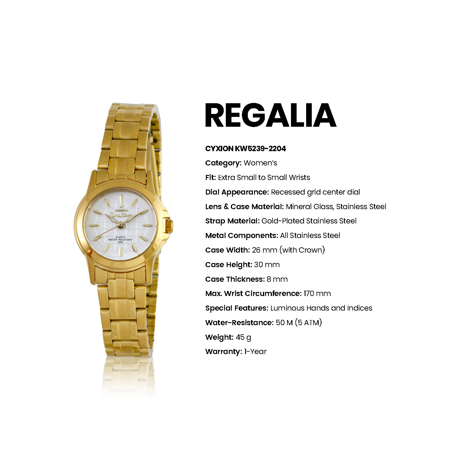 REGALIA CYXION Women's Analog White/Gold Stainless Steel KW5239-2204 Watch