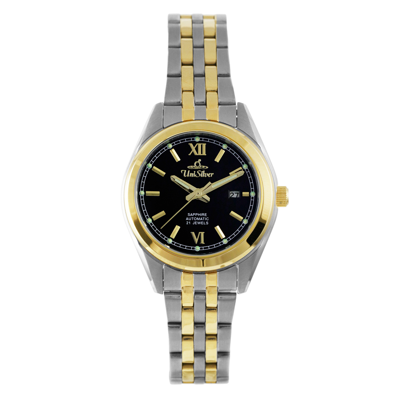 SAPHIRION Women's Extra Small Automatic Analog Black/Two-Tone (Silver and Gold) Stainless Steel KW5087-2305 Watch
