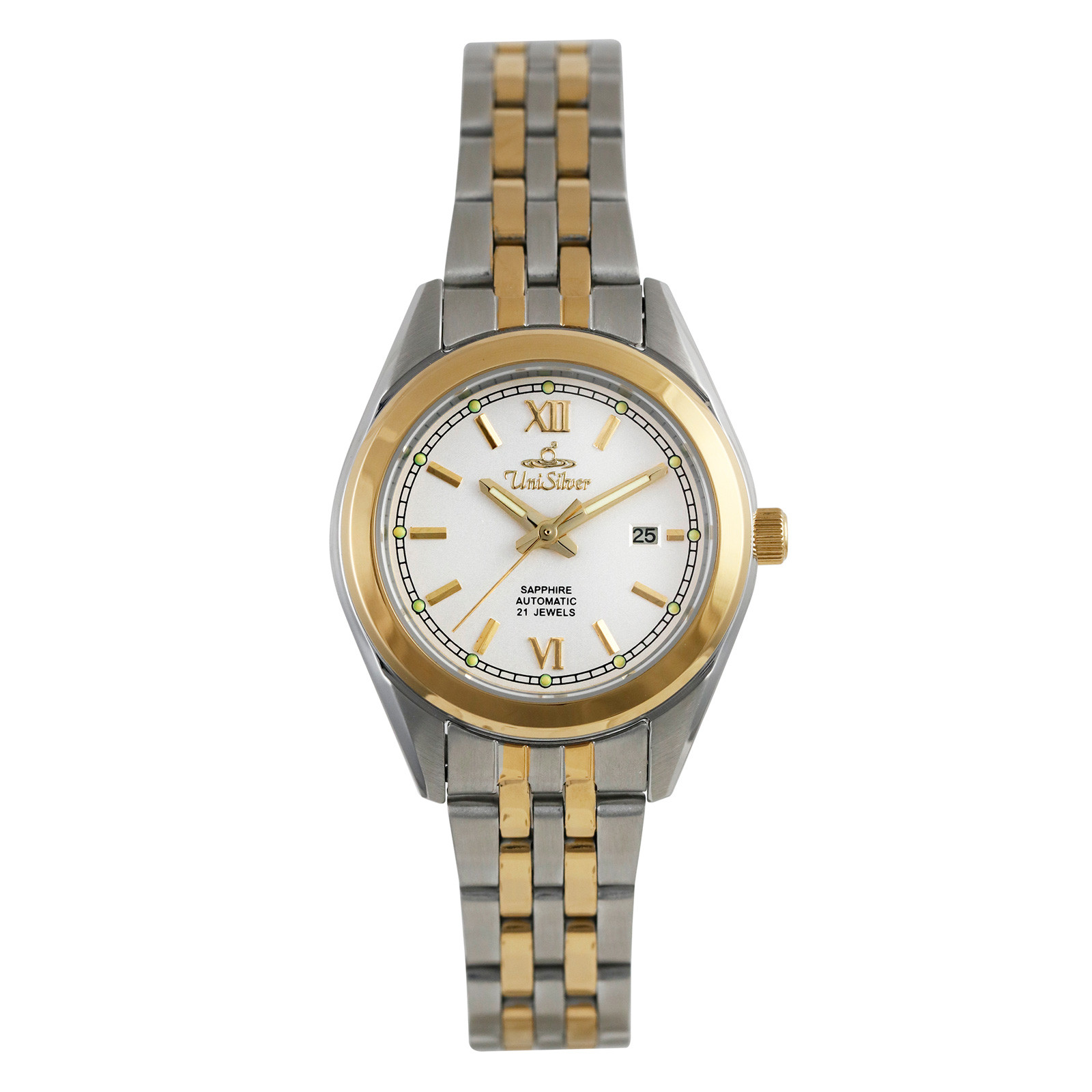 SAPHIRION Women's Extra Small Automatic Analog Silvery White/Two-Tone (Silver and Gold) Stainless Steel KW5087-2304 Watch