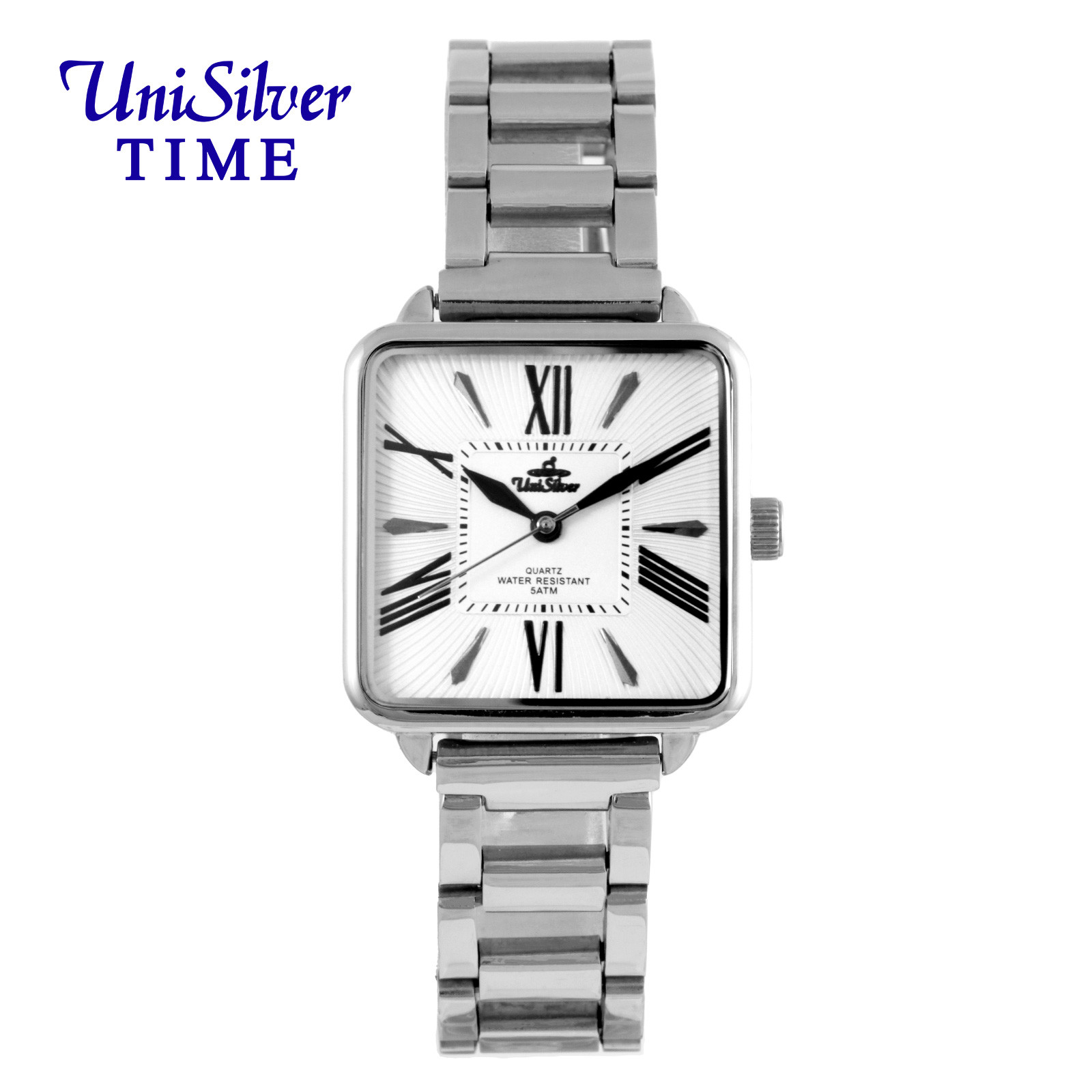 VERIQ ELION Women's Extra Small Analog Square Dial, Chain Type Links Bracelet Silver-White/Silver Stainless Steel (Chain Link) KW5308-1101 Watch