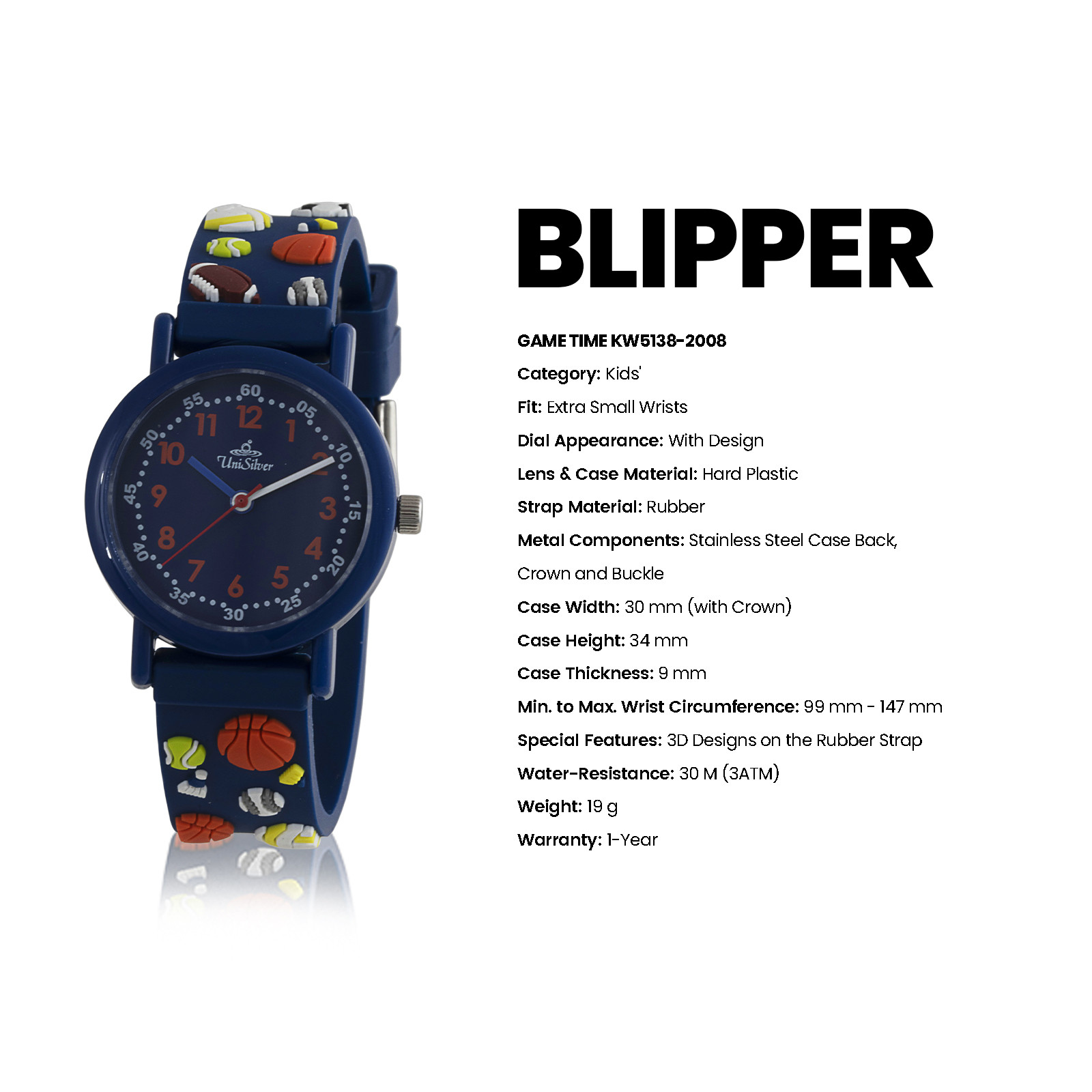BLIPPER GAME TIME Kids' Analog Multi-Colored/Dark Blue Rubber KW5138-2008 Watch With Free