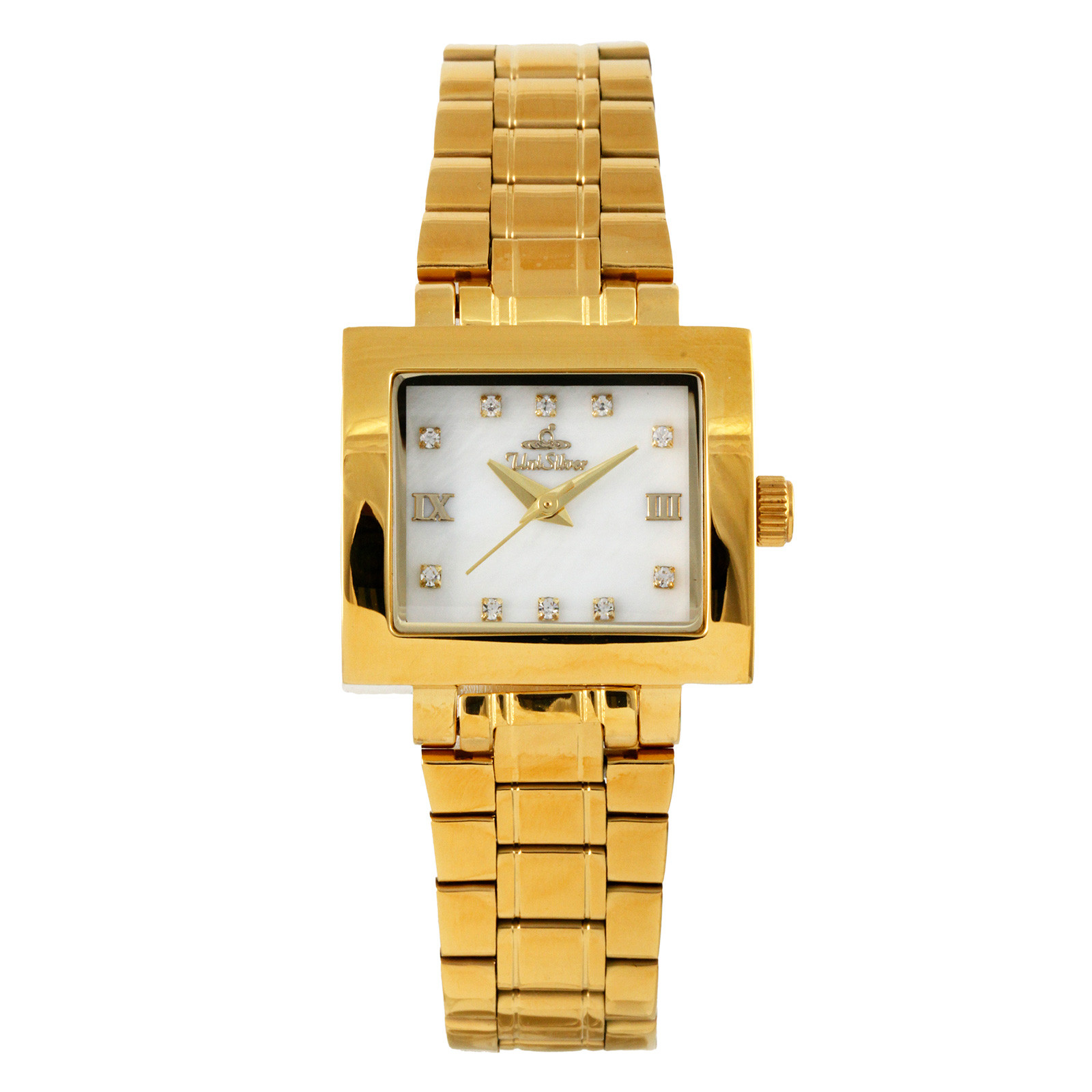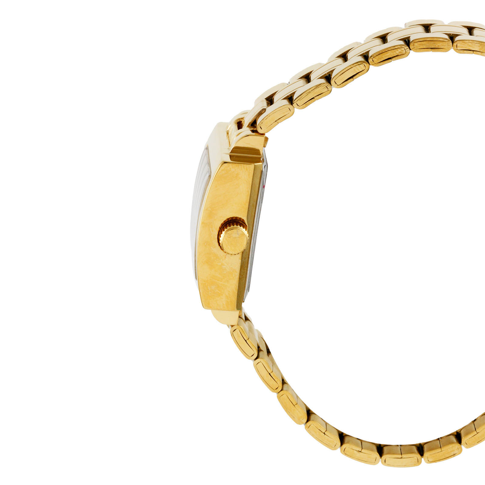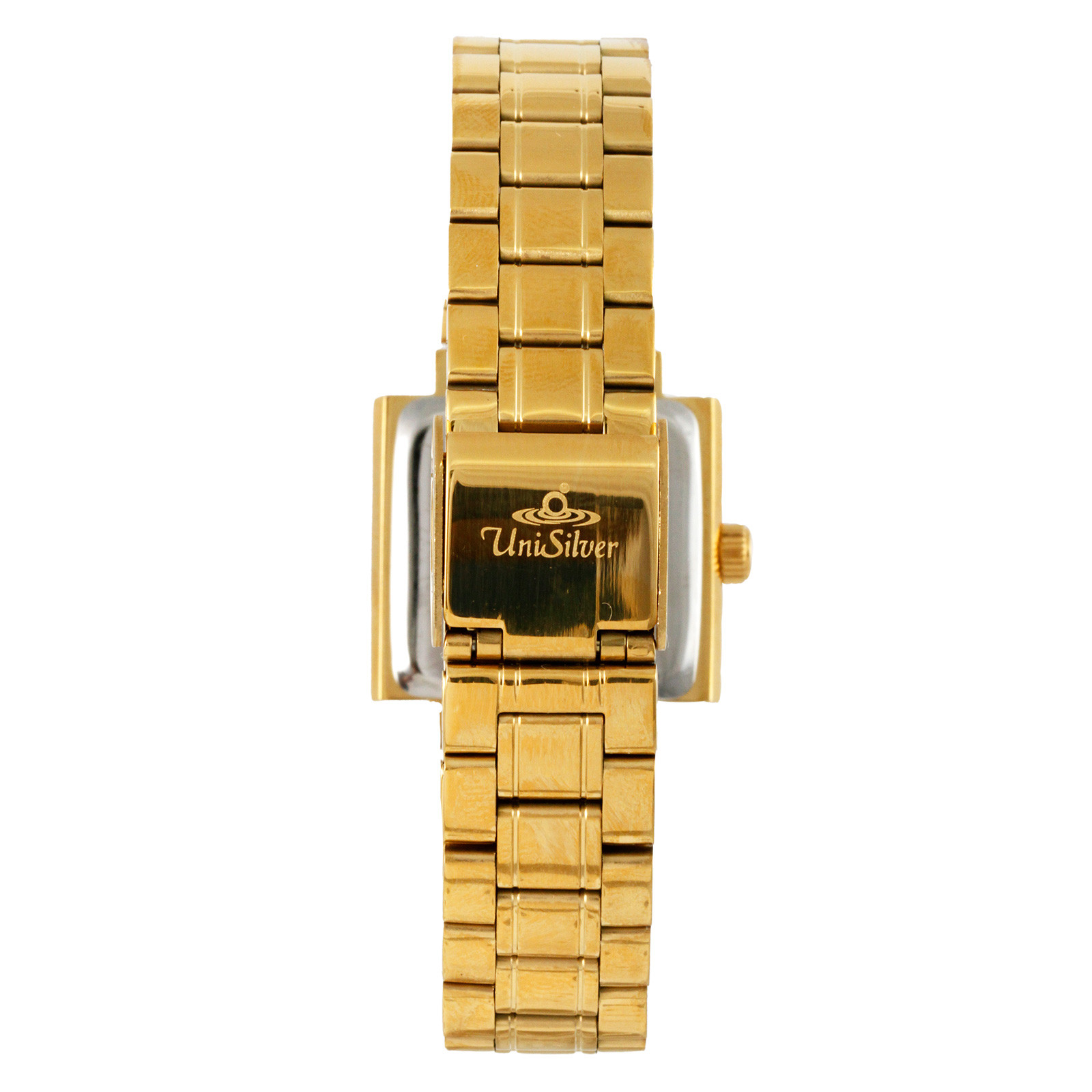 Radiate sophistication with the Delaine Diem timepiece from UniSilver TIME. This gold-plated accessory gleams with its sleek bracelet. The focal point - the off-white dial - sparkles marvelously with crystals for hour indices. The rectangular-shaped dial is the perfect statement for this timeless watch.