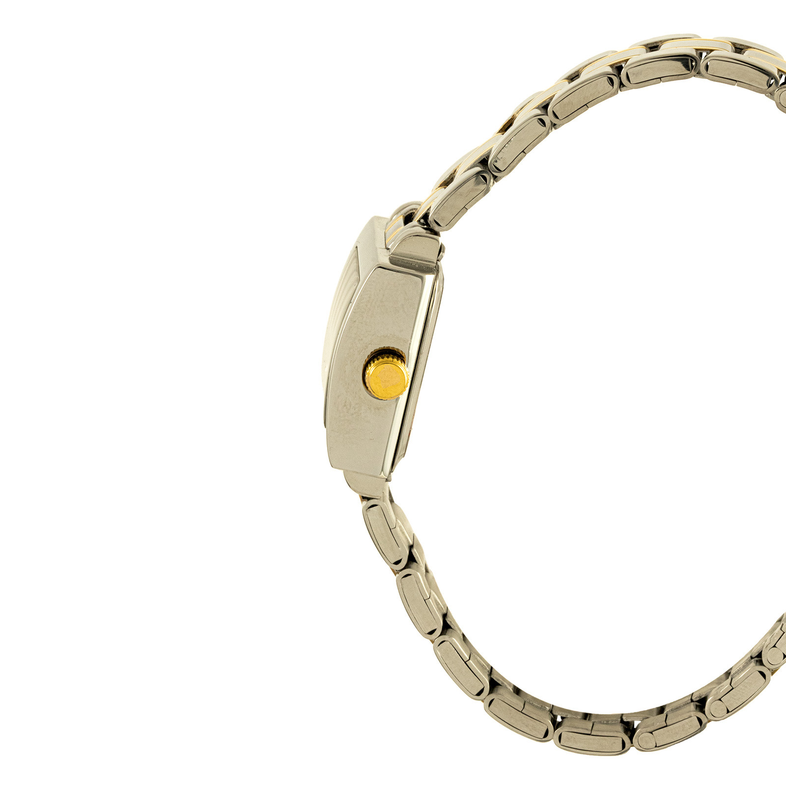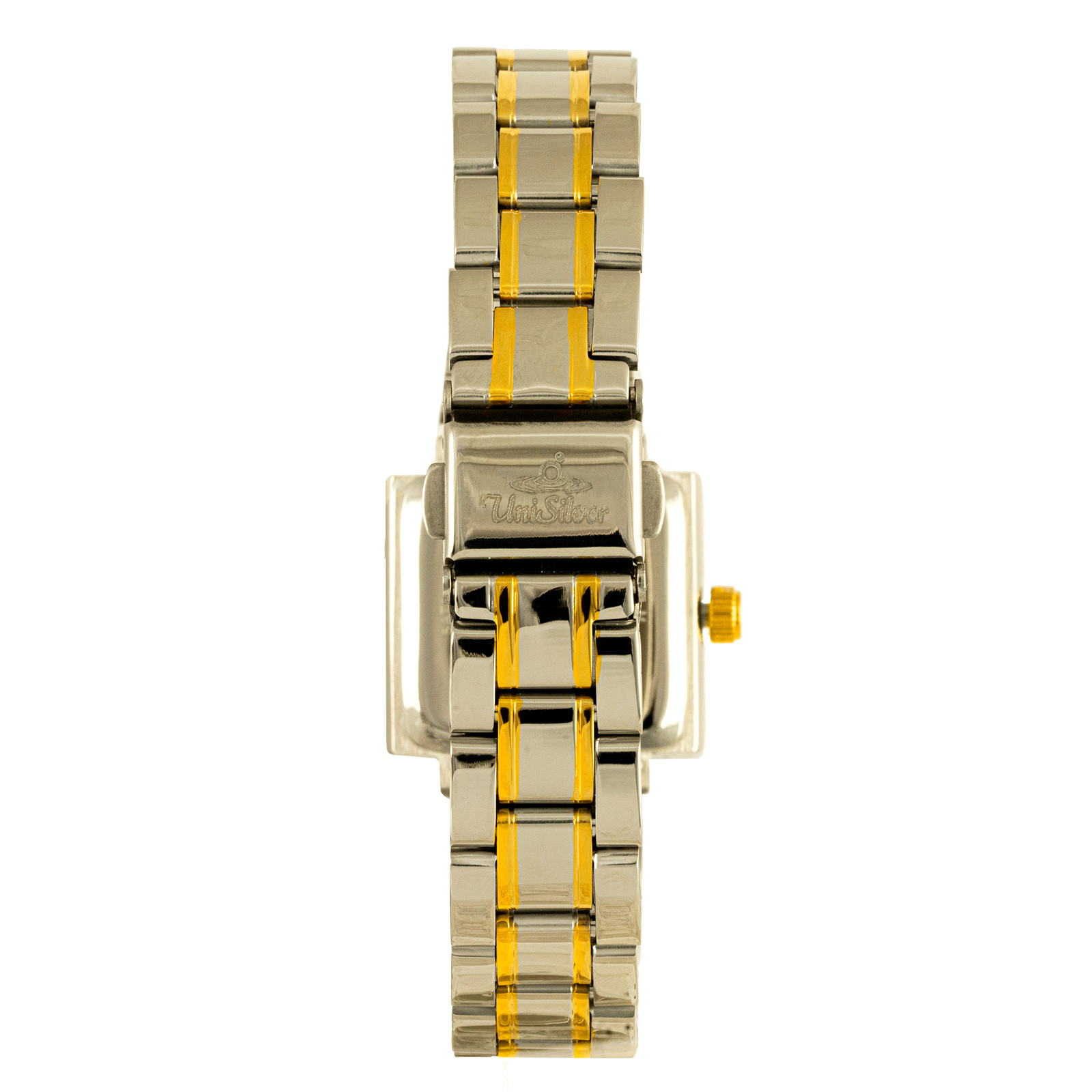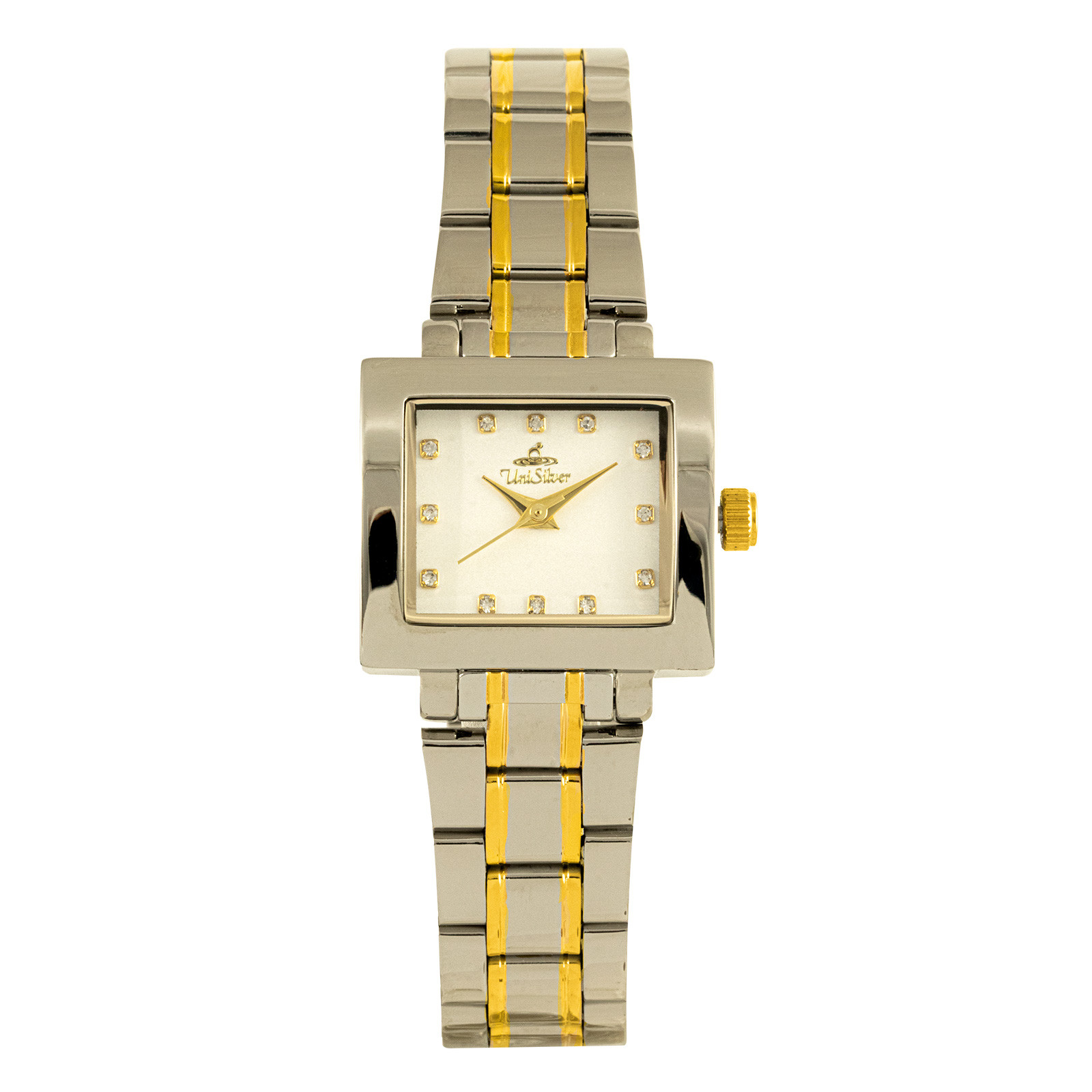 Radiate sophistication with the Delaine Moda timepiece from UniSilver TIME. This gold-plated accessory gleams with its sleek bracelet. The focal point - the off-white dial - sparkles marvelously with crystals for hour indices. The rectangular-shaped dial is the perfect statement for this timeless watch.