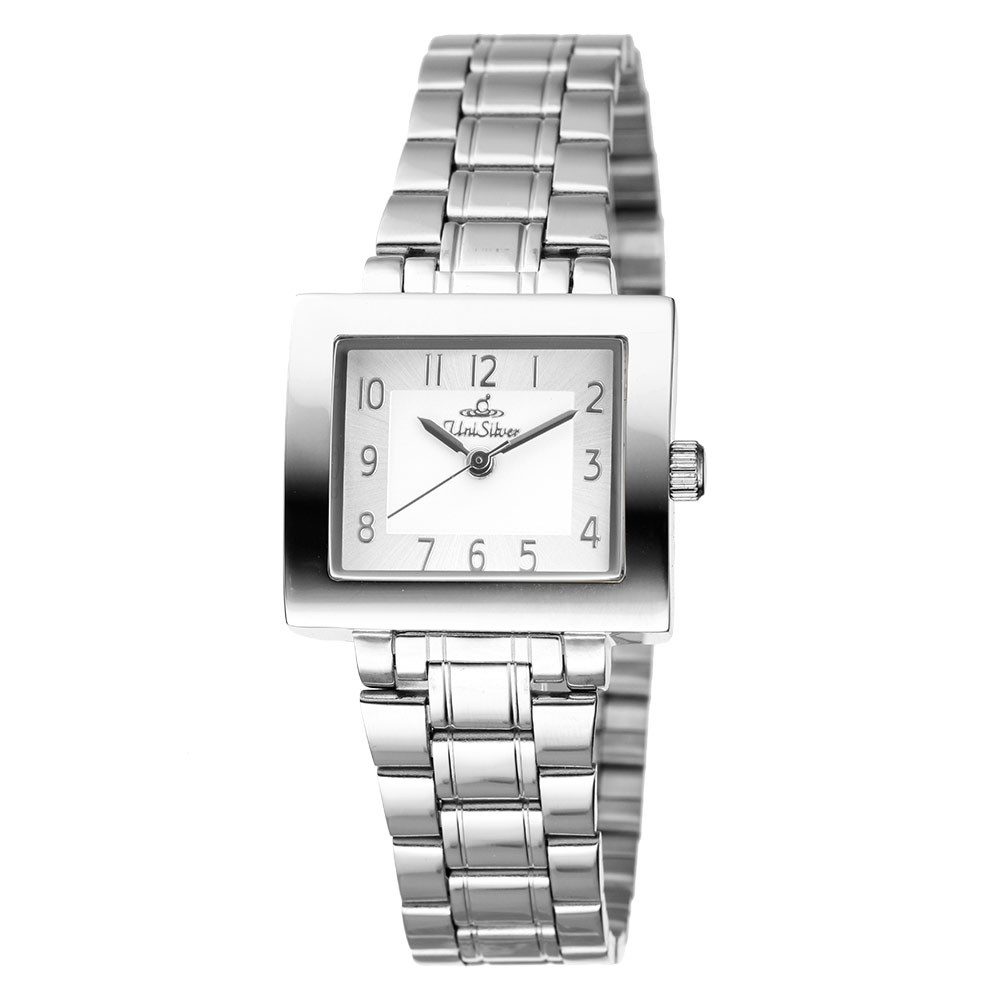 Radiate sophistication with the Delaine Zia timepiece from UniSilver TIME. This accessory gleams with its sleek bracelet. The rectangular-shaped dial is the perfect statement for this elegant watch.