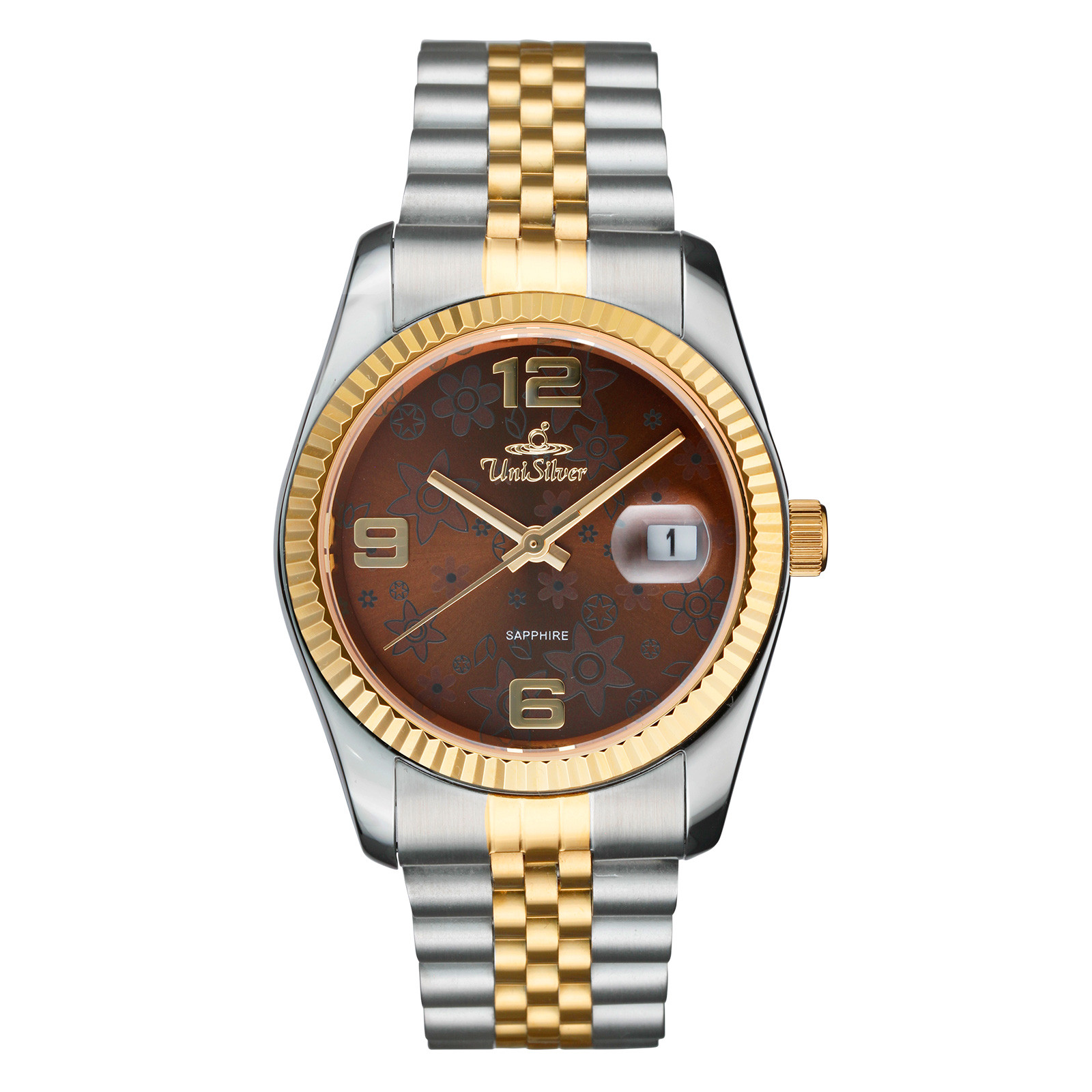 REMUS FIORA Women's Small to Medium Analog Sapphire Metallic Brown/Two-Tone (Silver and Gold) Stainless Steel KW3793-1311 Watch