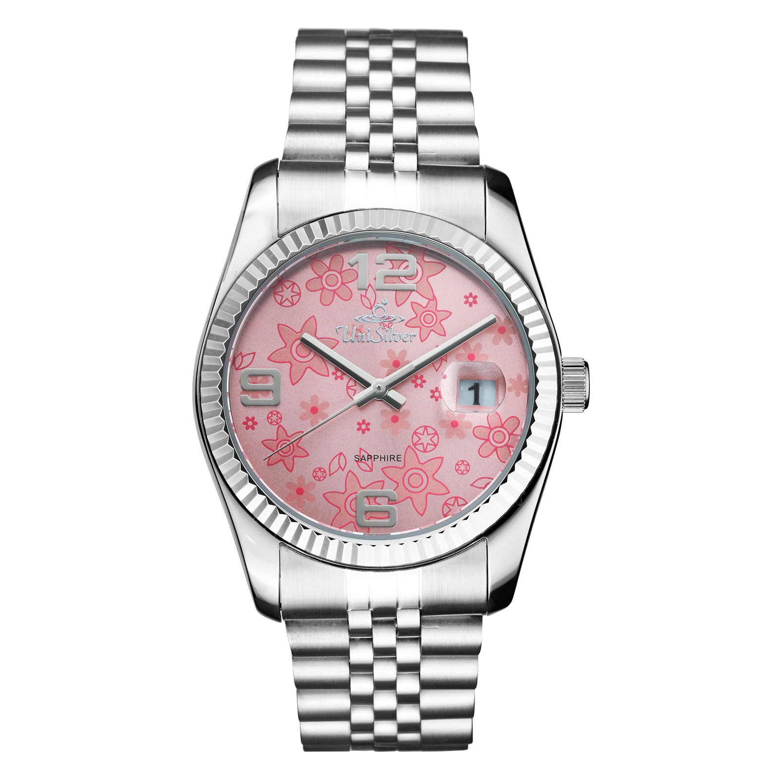 This delightful watch will charm you with its floral-engraved dial and classic casing. Add a piece of joy to your wardrobe with the adorable Remus Fiora stainless steel watch from UniSilver TIME.