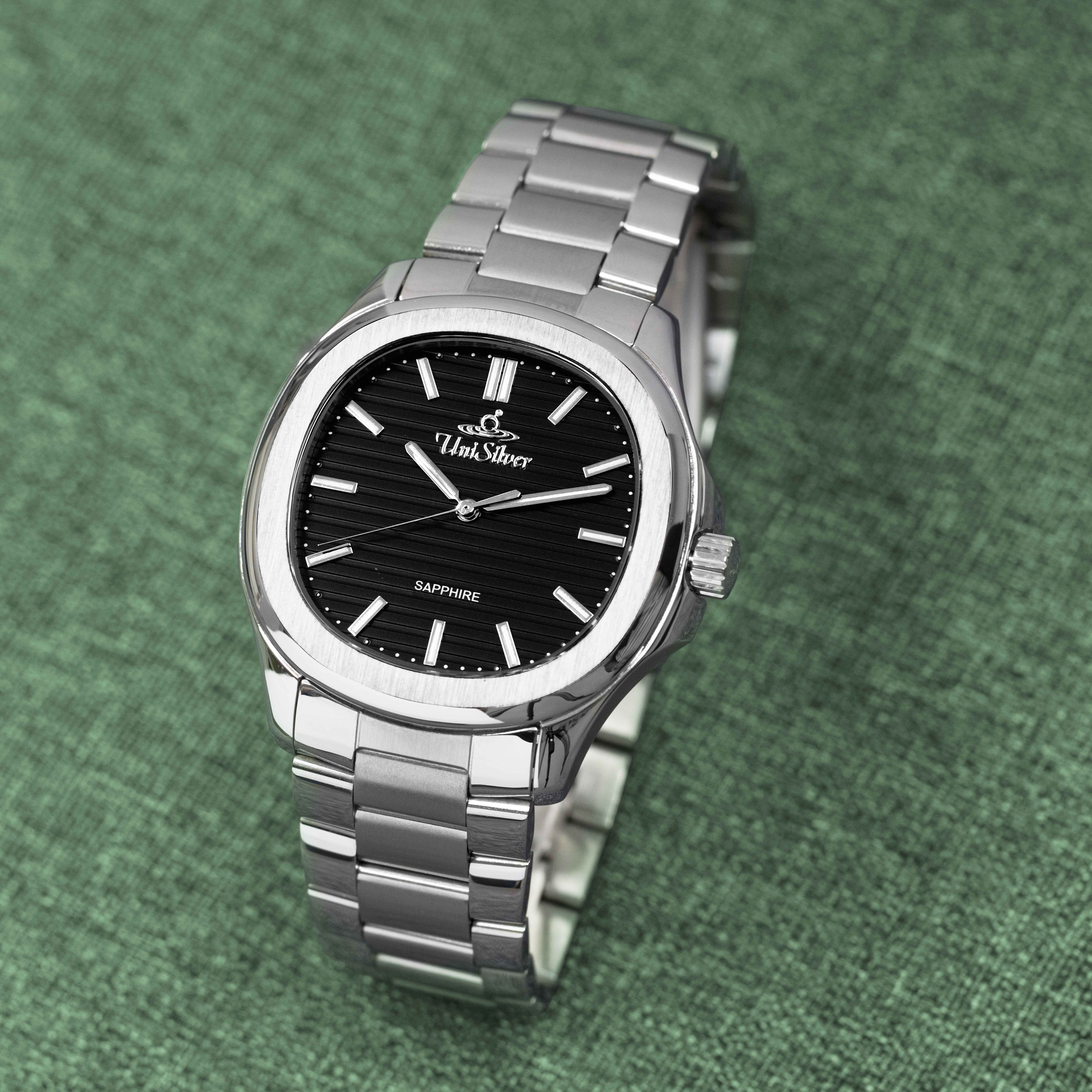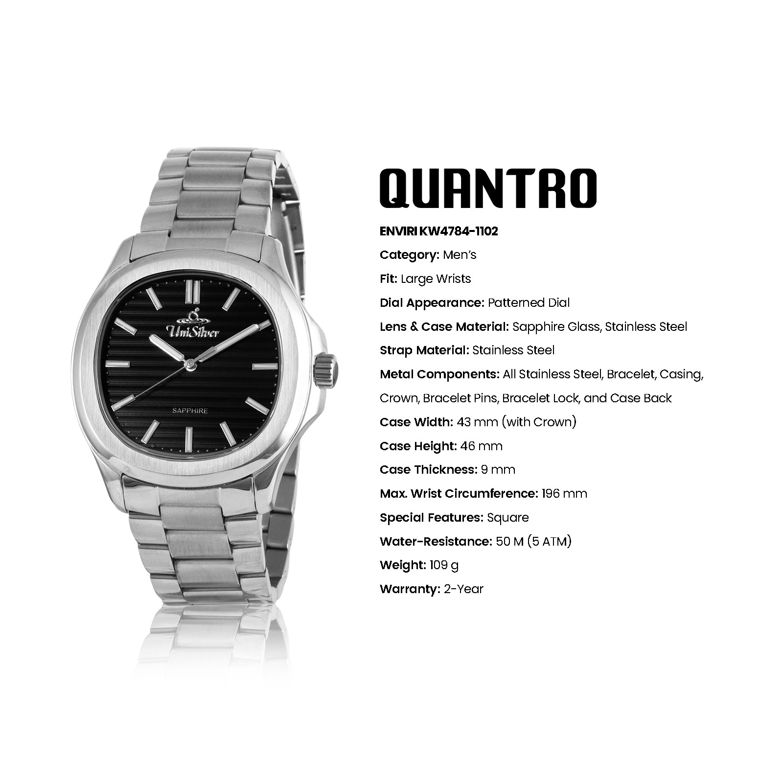 MEN'S/ Large/ QUANTRO/ ENVIRI/ Analog/ Square/ Black/ Silver Stainless Steel/ KW4784-1102 Watch